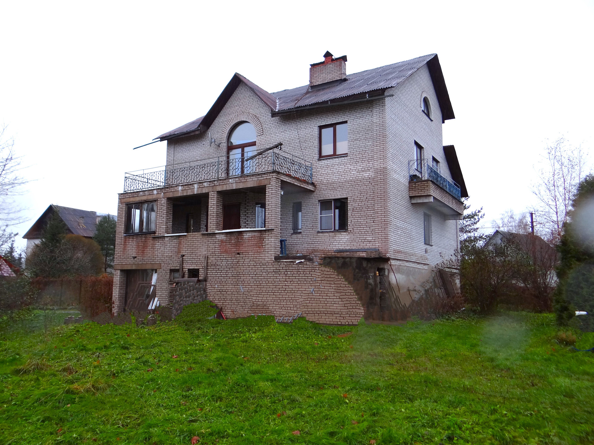 Ленинградская обл., Выборгский р-н, п. Коробицино (центр). Продается коттедж (ИЖС) для круглогодичного проживания общ.площадью 410 кв.м. (жилая 312 кв.м.). Дом 1997 года постройки,3-х этажный, с цокольным этажом, мансардой, террасой и балконами; фундамент – бетонные блоки, стены -кирпич, крыша – ондулин. В доме все коммуникации – центральные газ (котел, плита) и водопровод, канализация локальная, эл-во 15 кВт., отопление – теплые полы и радиаторы. По этажам: цоколь- котельная, постирочная , помещения для оборудования бани, сан.узел, ванная, кладовые резервн.топлива и инструментов; 1и2 этажи – кухня-столовая, просторная гостиная, 5 жилых комнат, сан.узел, гардеробная; мансардный этаж -единое помещение, без перегородок, требуется внутренняя отделка. Участок 10 соток, огорожен, разработан, подъезд асфальт. круглогодичный.