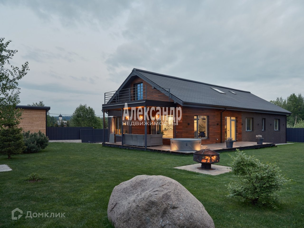 На участке: гараж, оборудована детская площадка, расстелен газон, система автополива, высажены деревья.