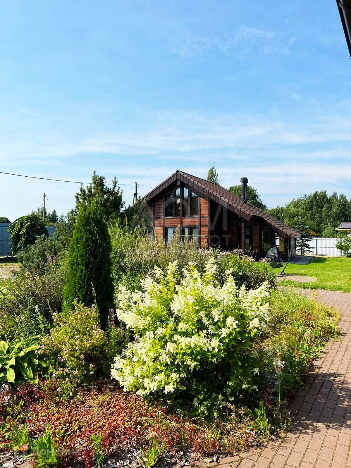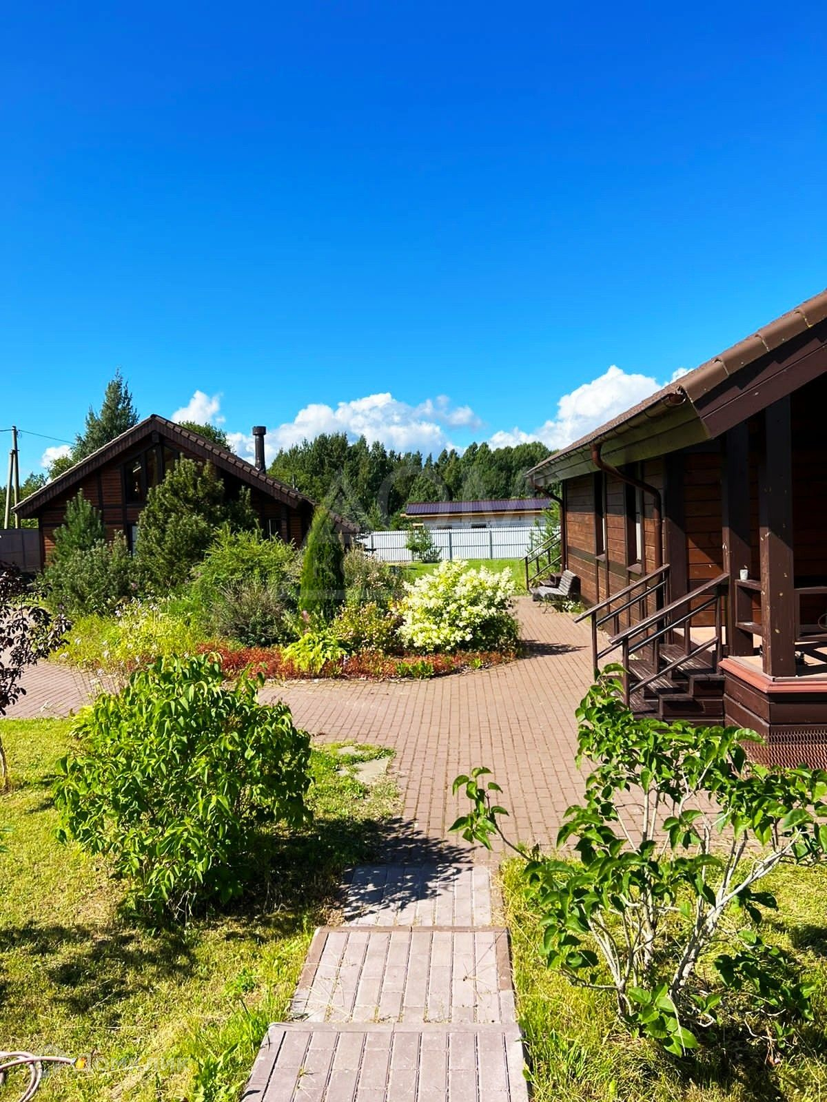 Двухуровневый коттедж площадью 220 м2 с террасами и гостевой дом с банным комплексом, расположены на красивом благоустроенном участке 30 соток.