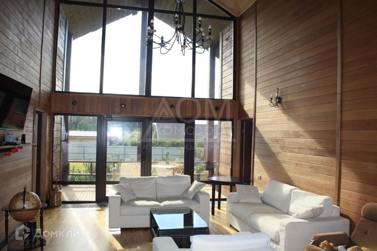 Внутренняя отделка стен дома выполнена из лиственницы, пол-паркетная доска, крыша-цементно-песчаная черепица.