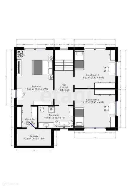 Монолитное перекрытие H=200мм армирование в два слоя, ячейкой 200х200 (арматурой 10 и 12 мм + усиление под проёмы и перегородки). 2й этаж – тоже самое.
