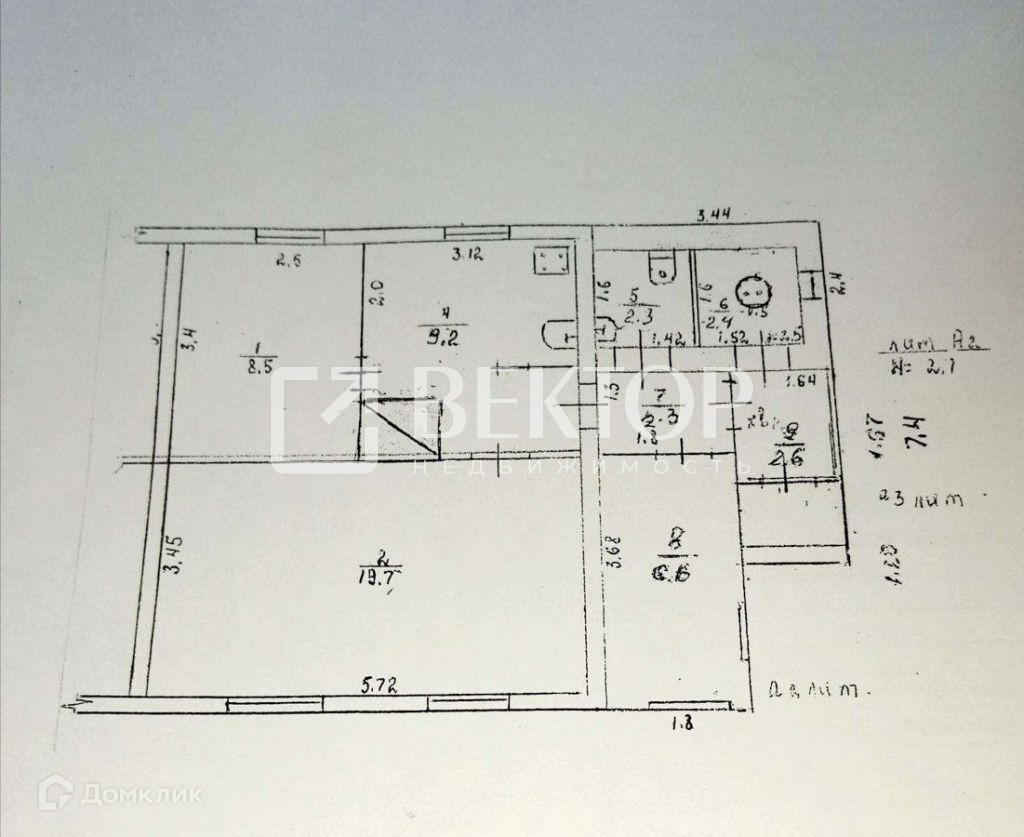 Общая площадь 42.1 м2