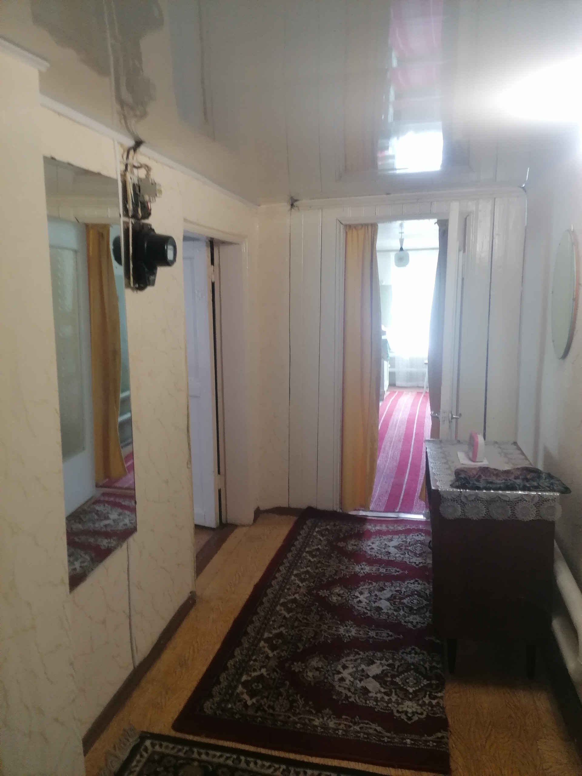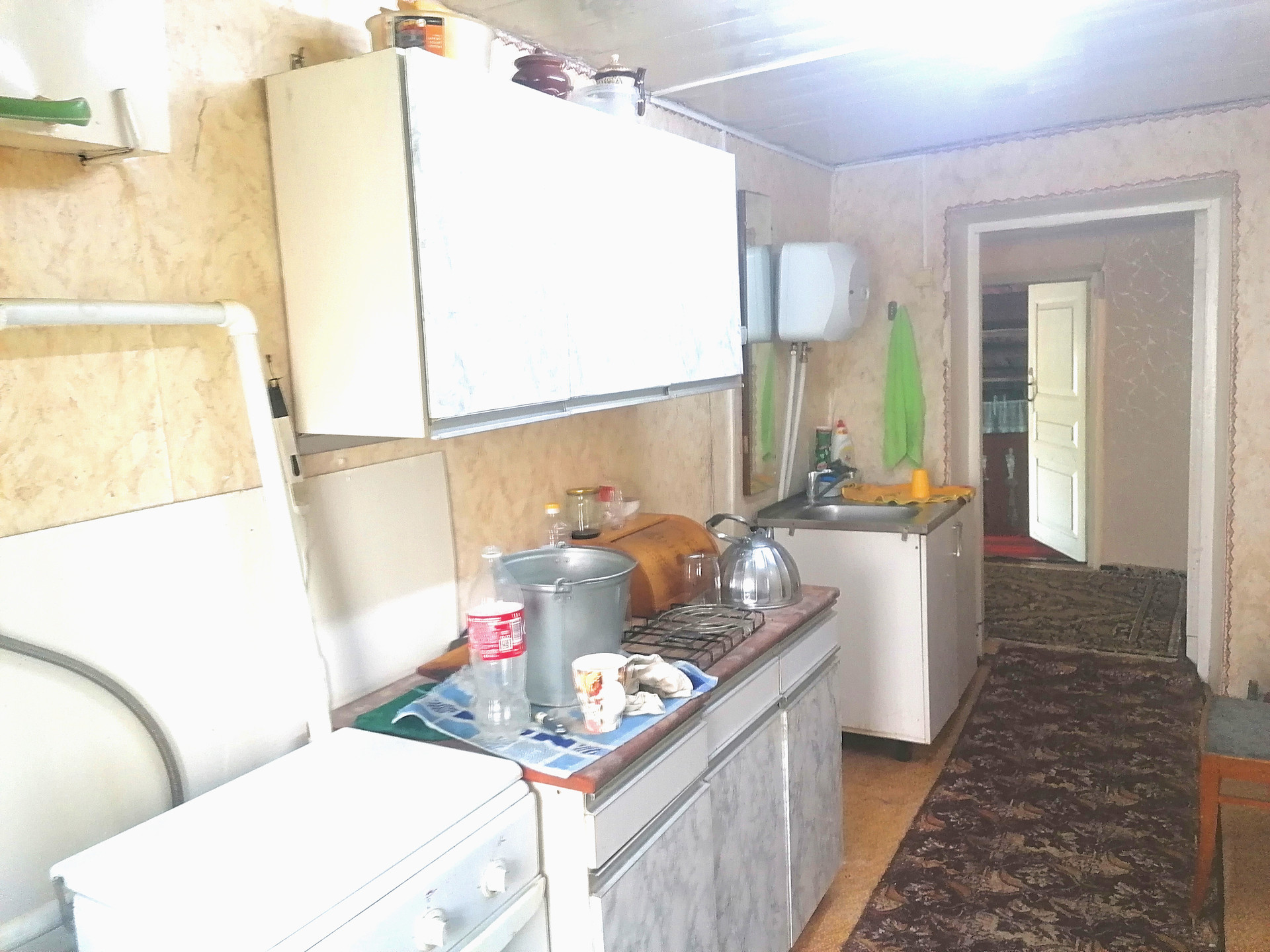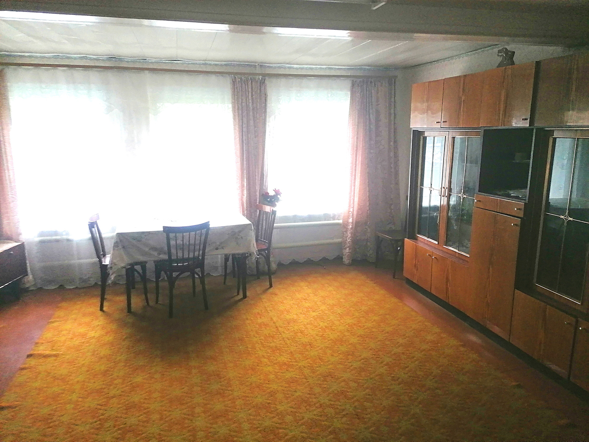 Дом крепкий и ровный. Бревенчатый пятистенок. Летом в таком доме прохладно, а зимой тепло. Пристрой кирпичный. Место высокое, воды на участке нет никогда. Отличный подъезд, асфальт до дома. В доме газовое отопление, удобства в доме, своя скважина с очень хорошей водой. Все окна пластиковые. Под всем домом есть высокий подпол. На участке кирпичная баня в хорошем состоянии, а так же плодовые деревья.
