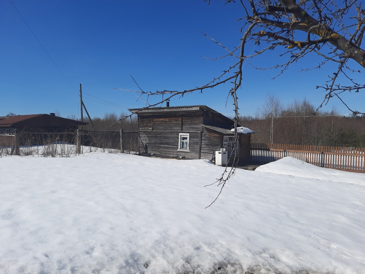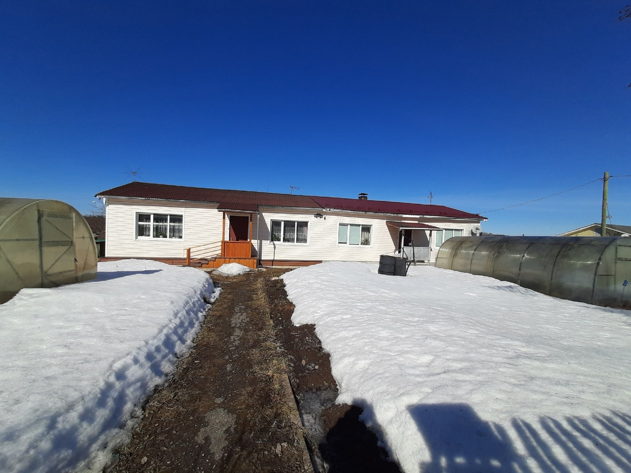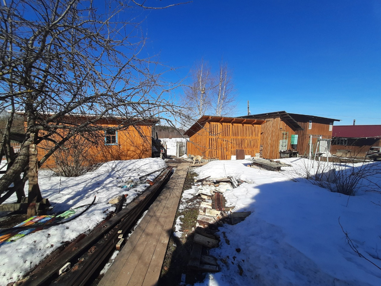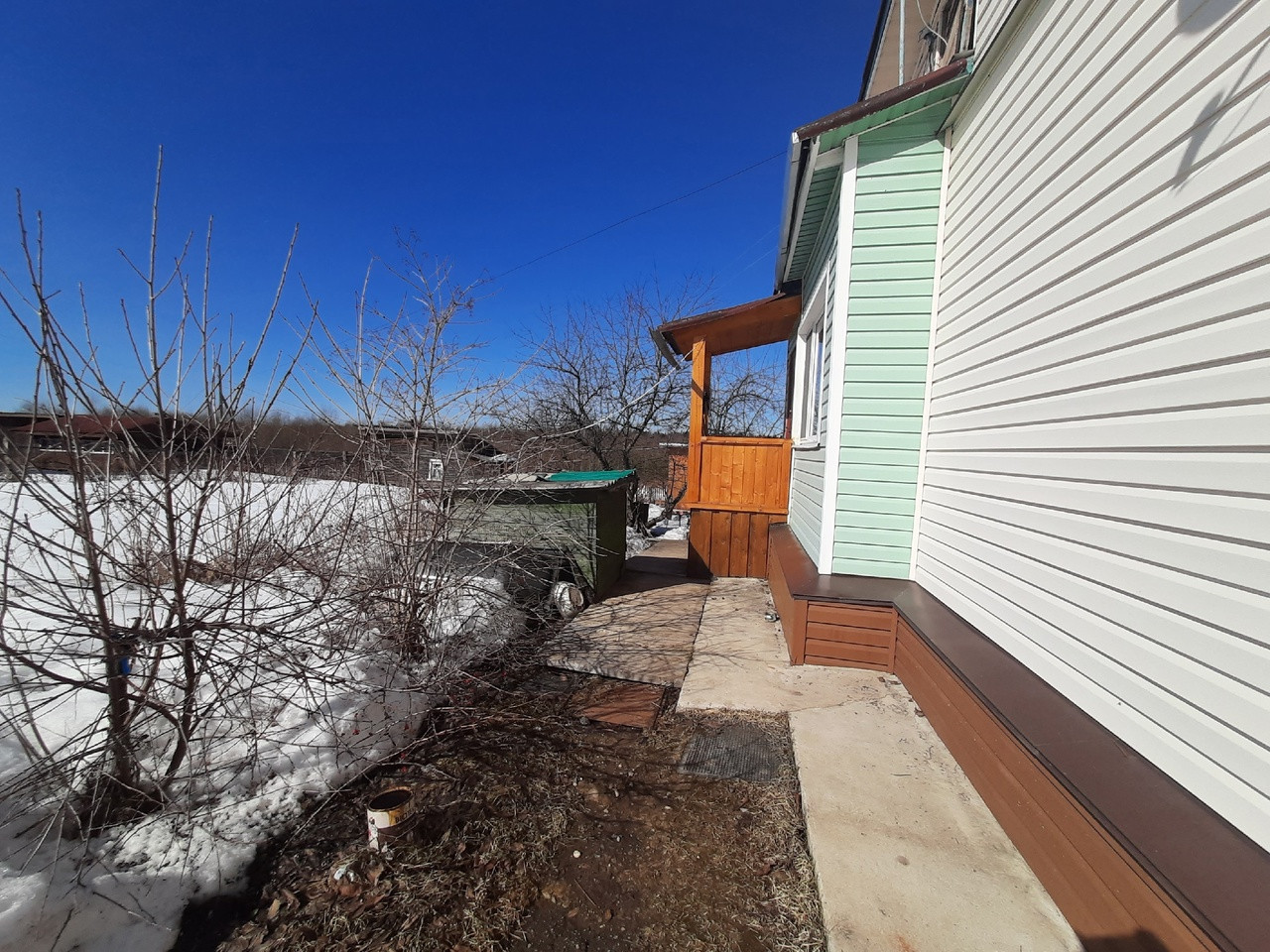 - Участок у дома разработан; посажены яблони, малина, смородина