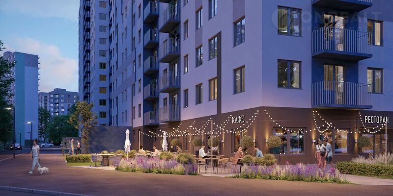Между домами будут устроены бульвары, пешеходные и велодорожки, игровые и спортивные площадки, зоны отдыха для детей и взрослых. На первых этажах находятся колясочные, магазины, кафе и сервисные службы.