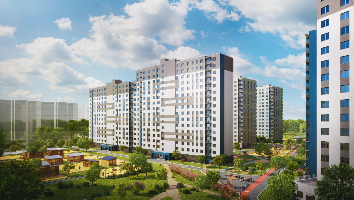 Отличительная особенность ЖК– благоприятная экология. Комплекс окружен густым лесом – чистый воздух и возможность для прогулки. Загородные преимущества места идеально сочетаются с городской благоустроенностью –  появятся 4 школы и 9 детских садов.