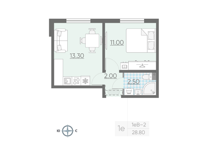 Общая площадь 28.8 м2