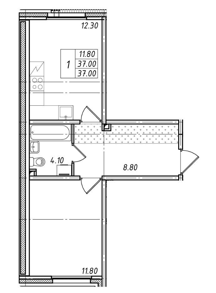Общая площадь 37 м2