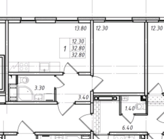 Общая площадь 32.8 м2