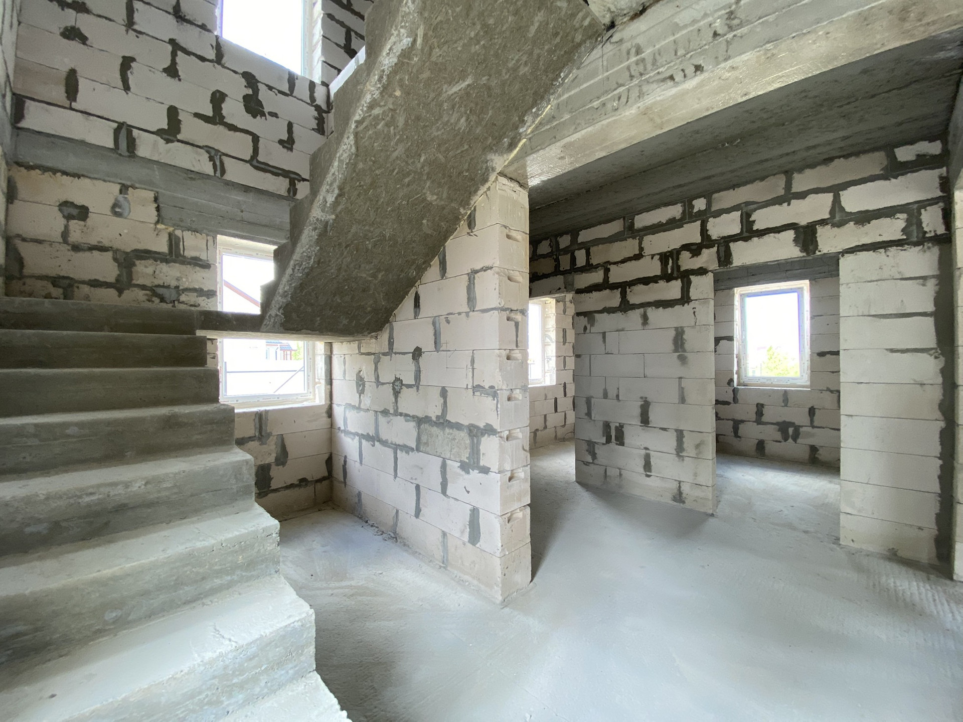 — Бетонный фундамент 8*10, лента(80см)+плита(25см), материал стен-газобетон 300мм, перекрытие железобетон,перегородки 150мм.