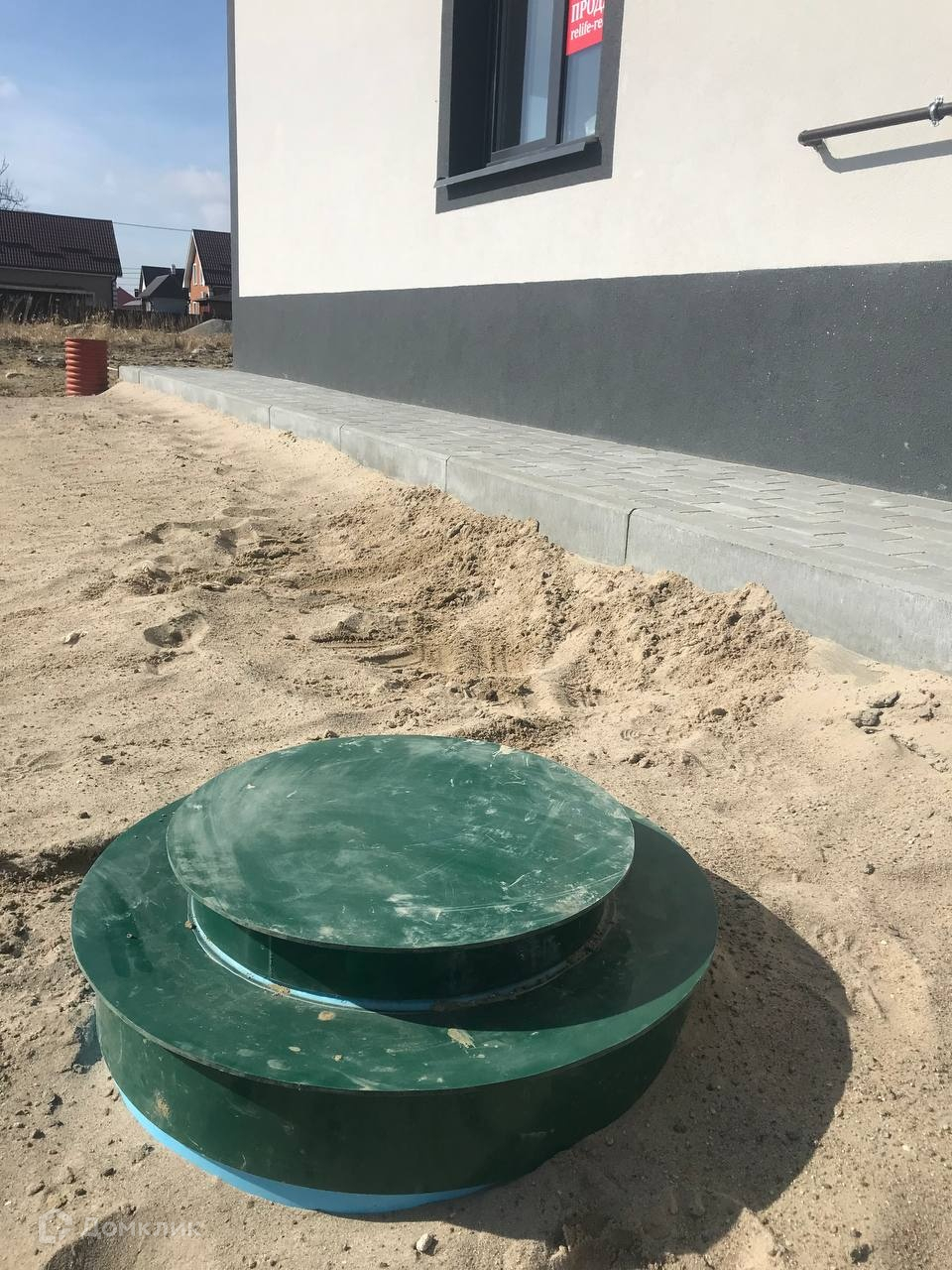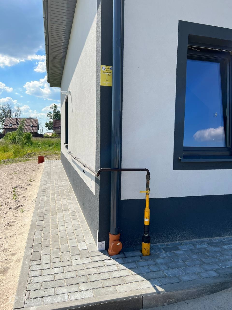 Вокруг дома сделана отмостка.