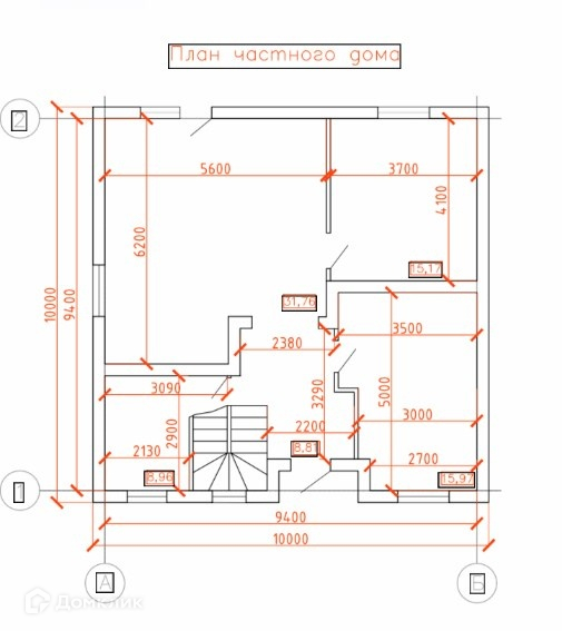 Лестница на второй этаж - монолитная железобетонная;