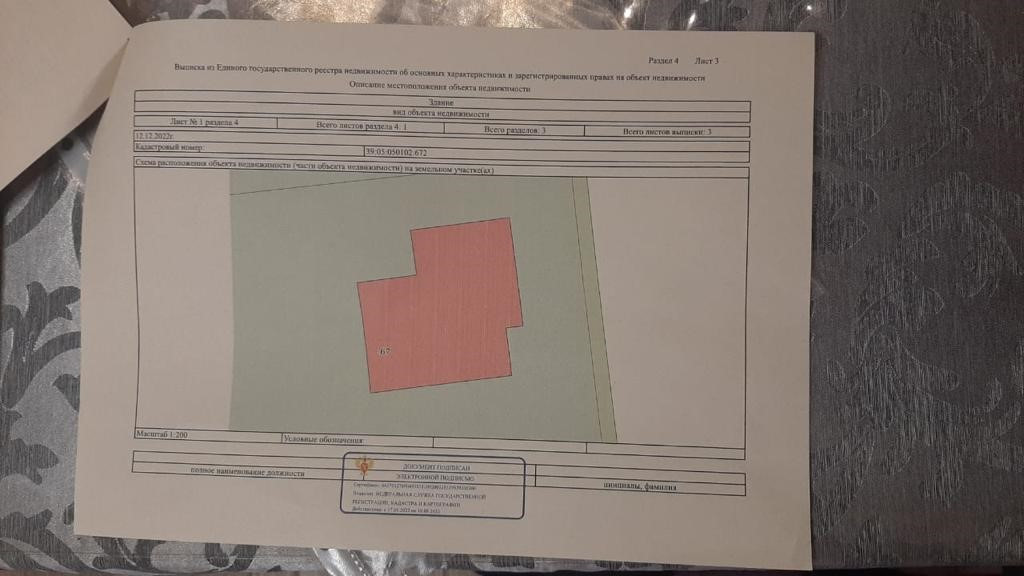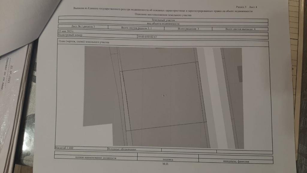 Кадастровый номер 39:05:050102:67., монолитная армированная плита по западным технологиям. 2 этажа, перекрытие- ж/б. Лестница бетонная.