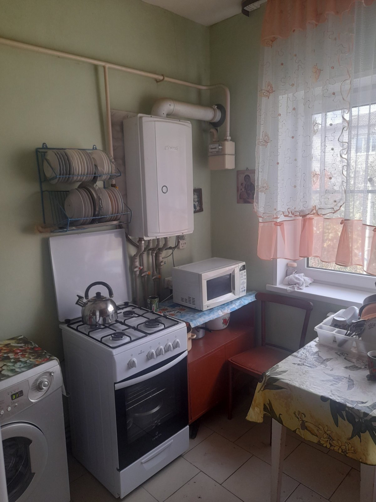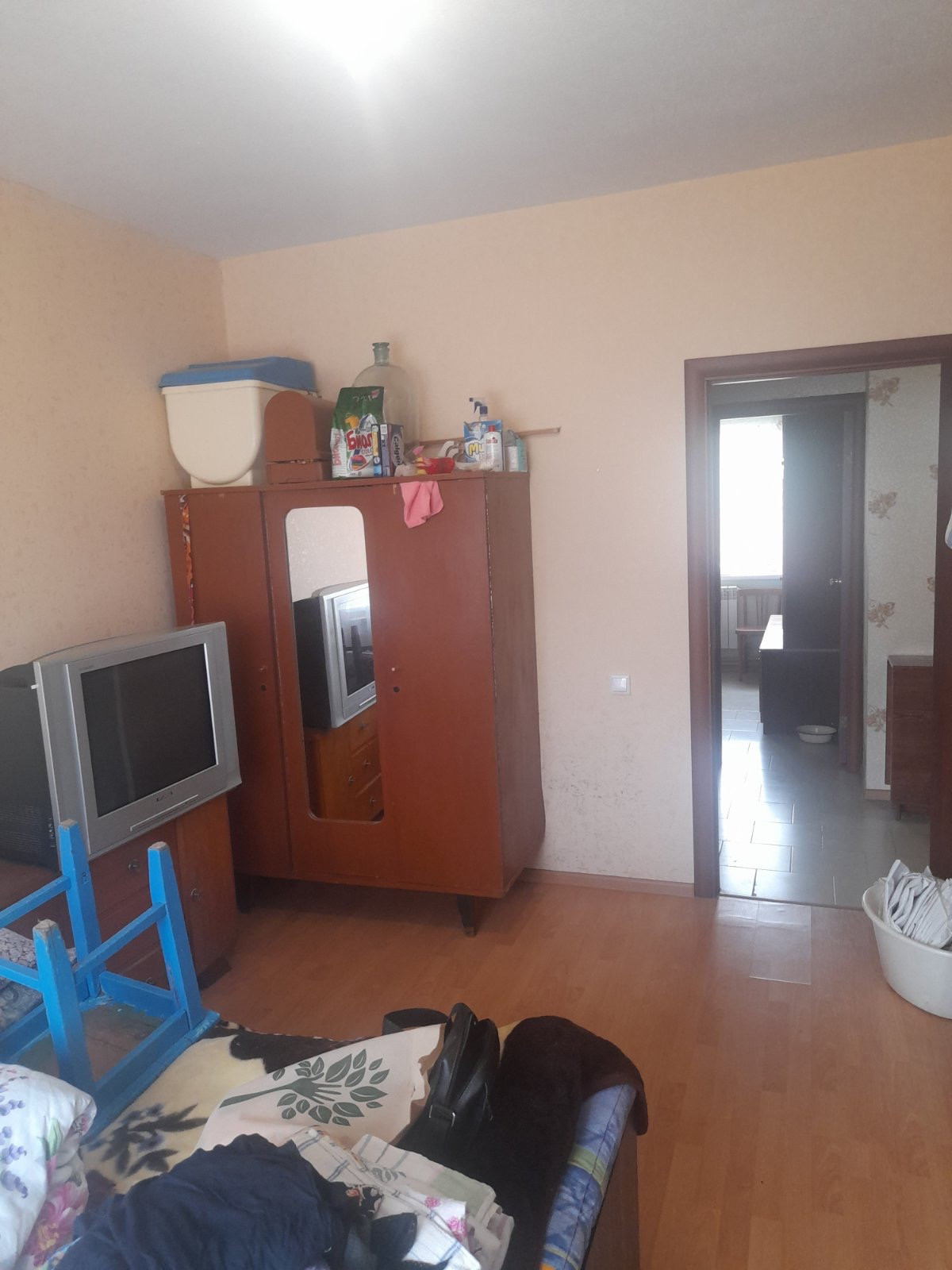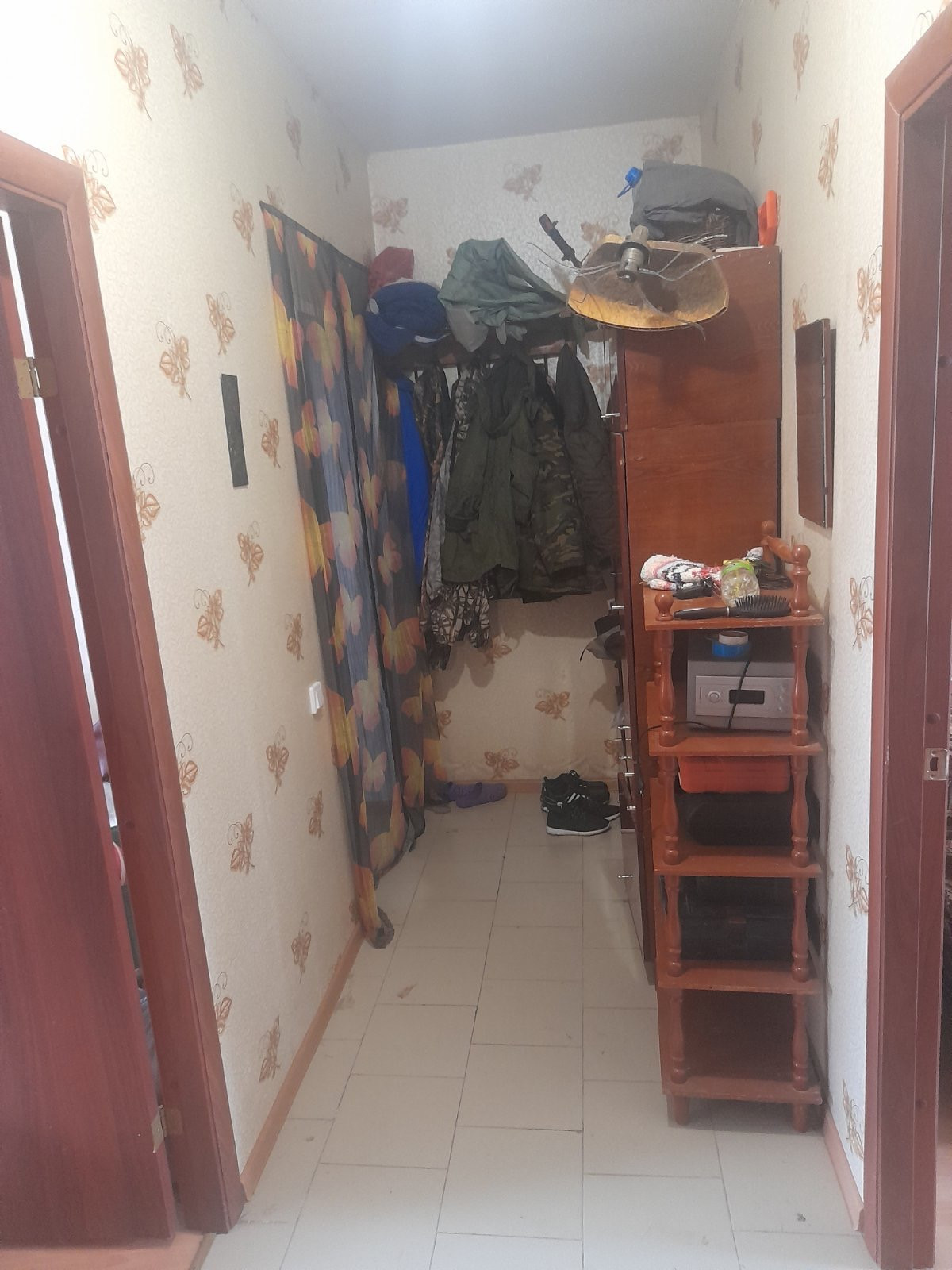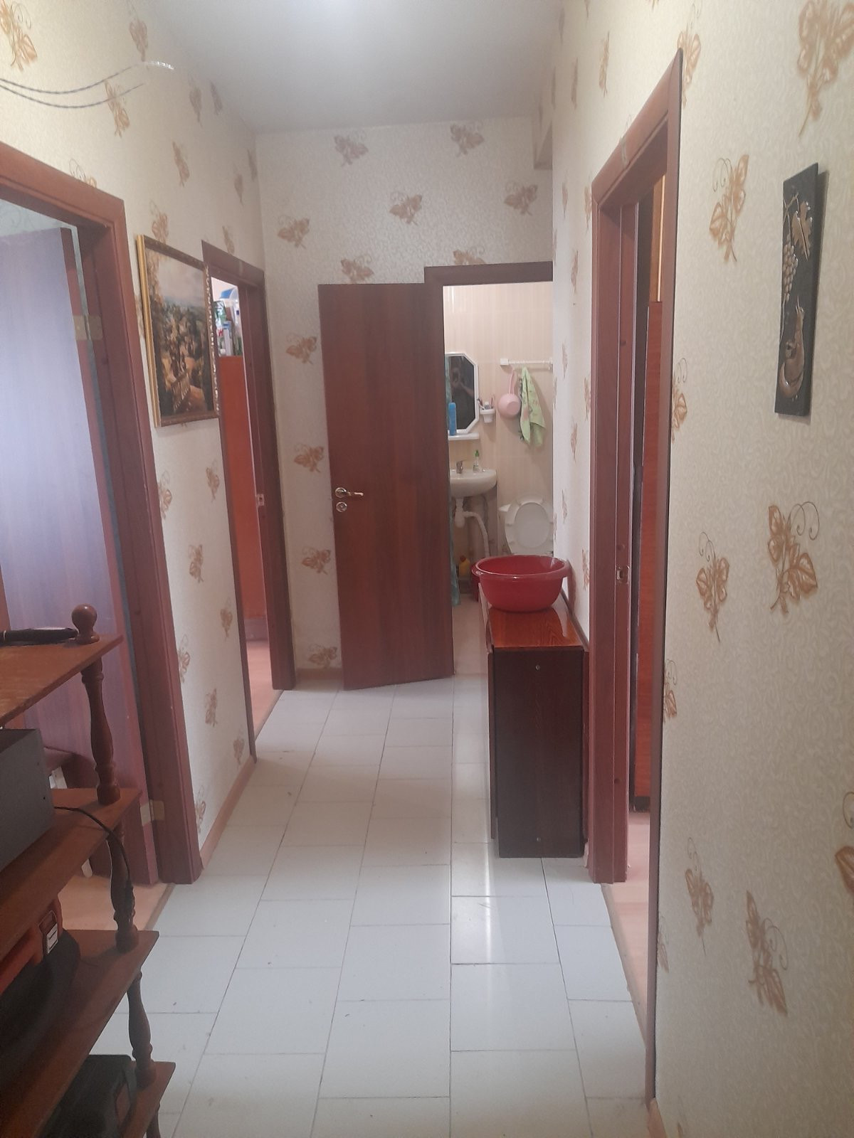 В коридоре, ванной и на кухне плитка. В комнатах ламинат. Стекла пластиковые.