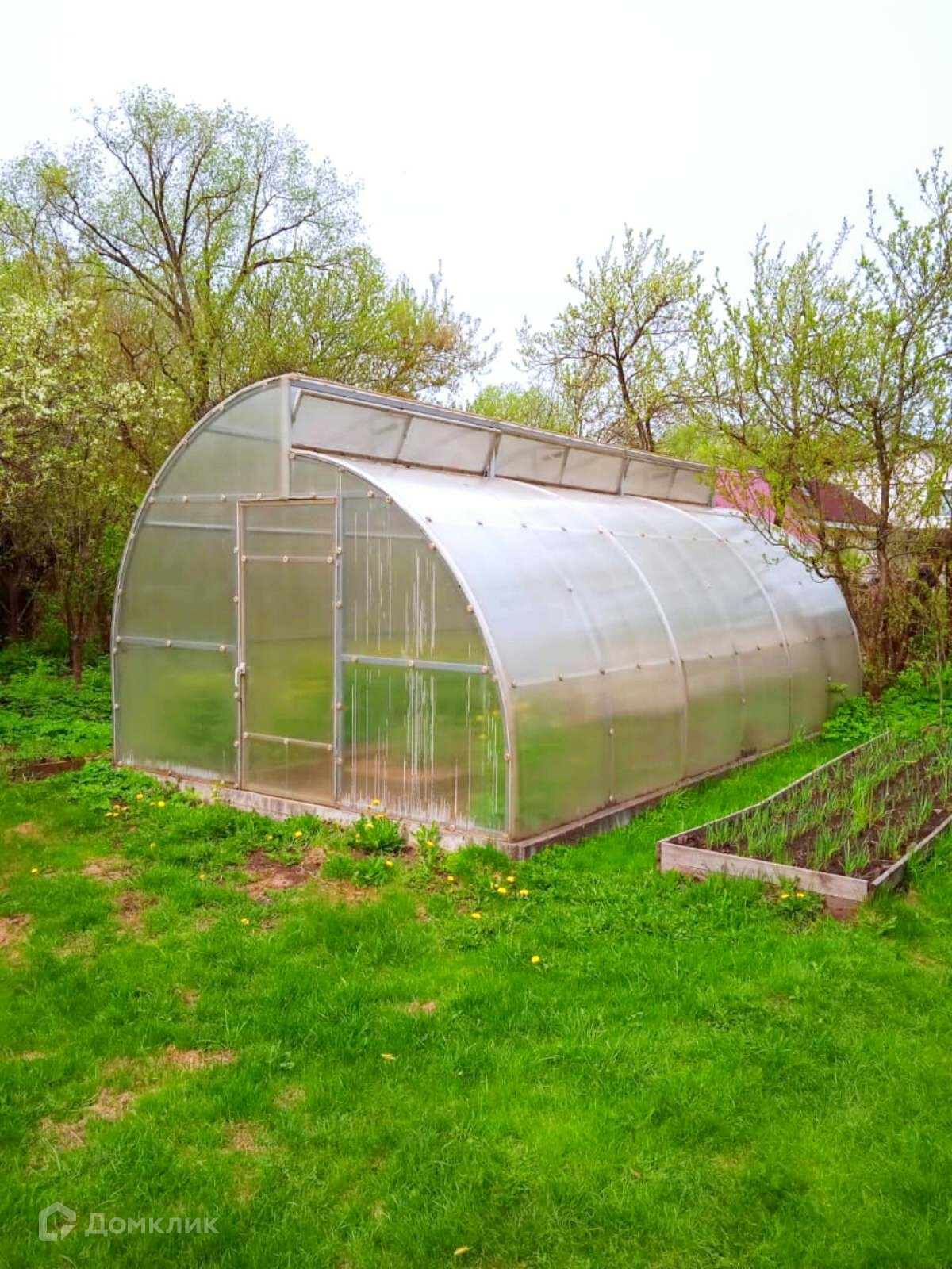 На участок заведено электричество (8 кВт), поливочная вода, садовые плодовые деревья (Слива - 4шт, Алыча, Груша - 2шт., Черешня - 2шт, Вишня - 2шт, Яблоня - 5шт, Малина, Черная смородина, Крыжовник, Красная смородина), хоз. блок, туалет, теплица с автоматическим проветриванием 6,3х3м, мангал, зона отдыха.