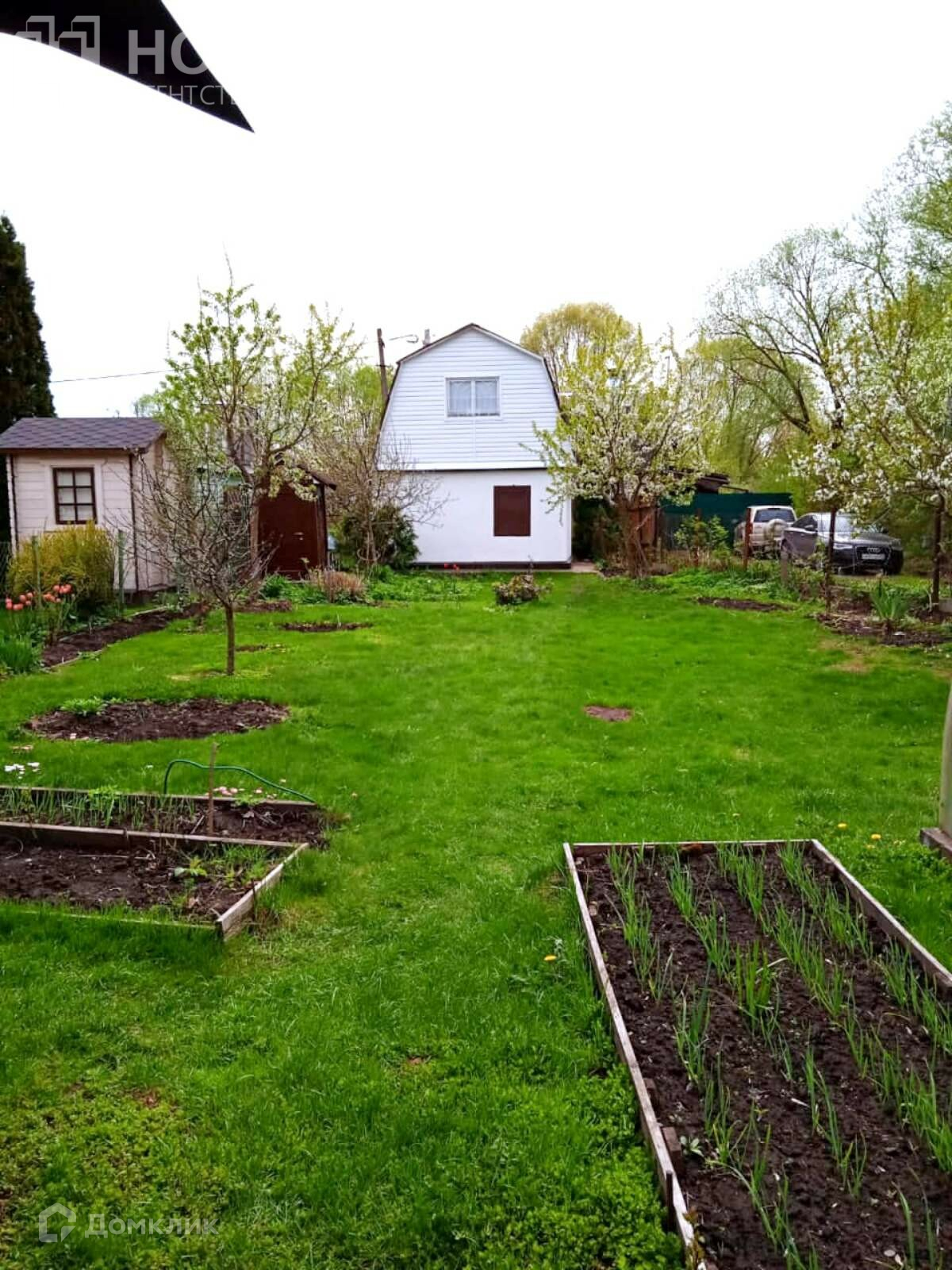 На участке расположен двухэтажный садовый дом площадью 48м2.