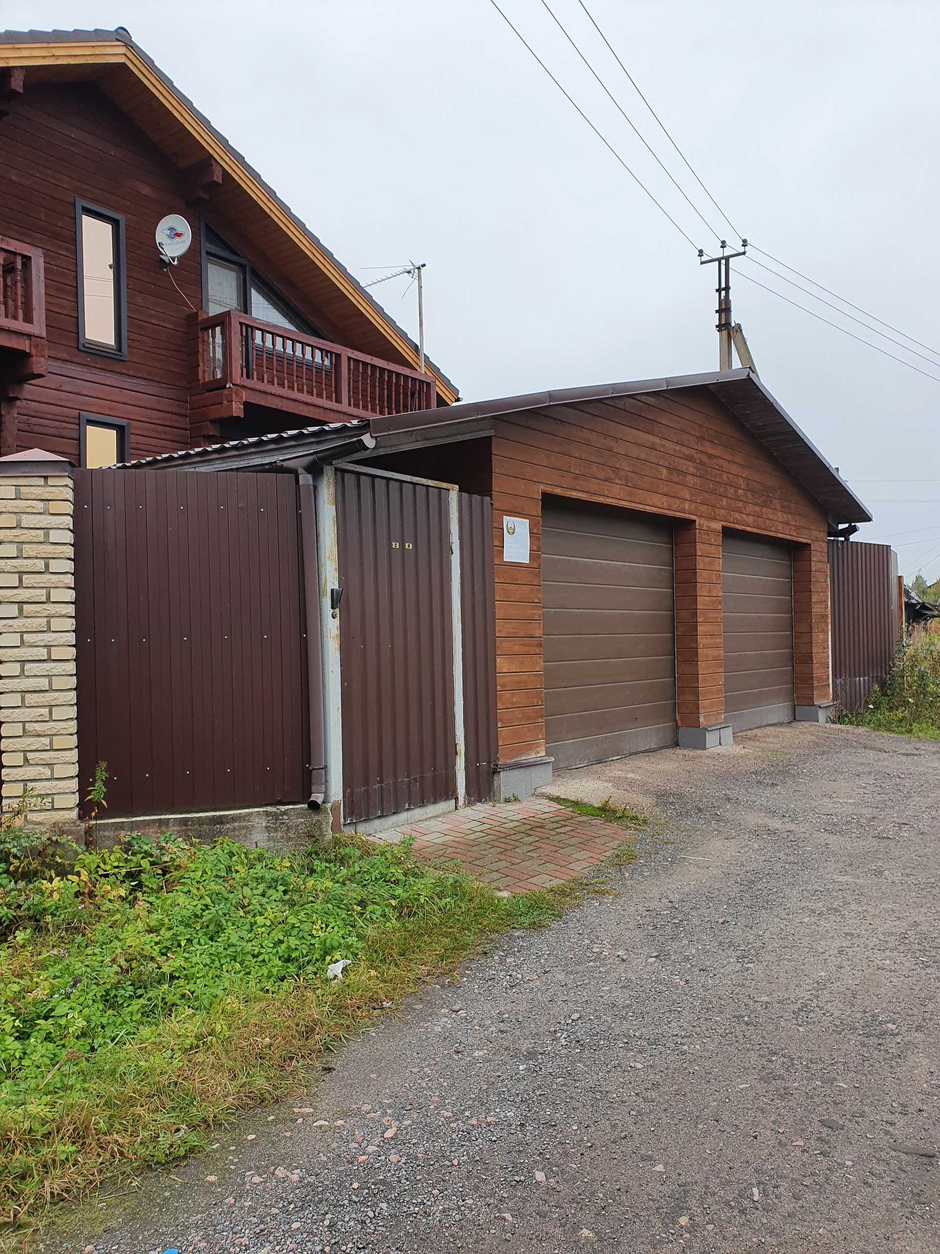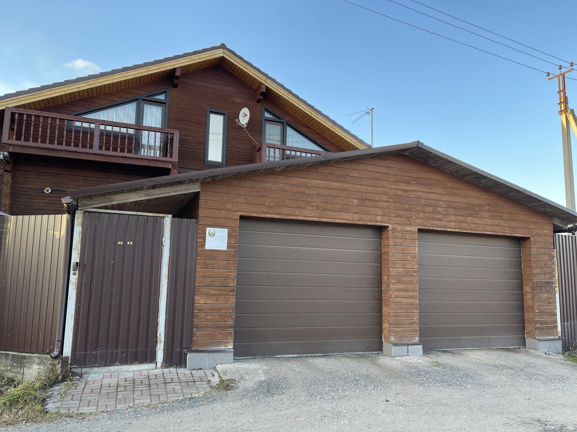 К дому пристроен теплый гараж на два автомобиля.