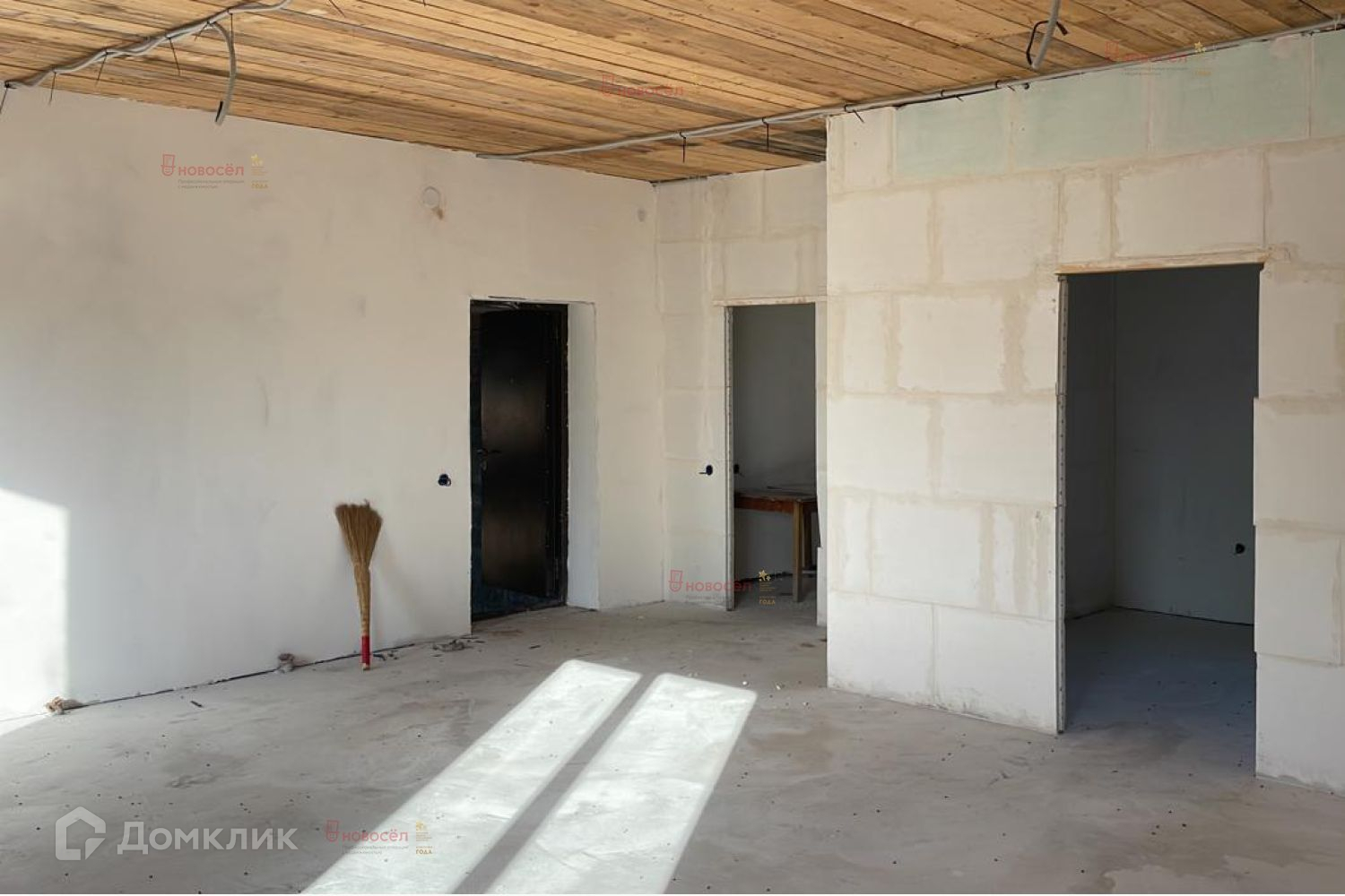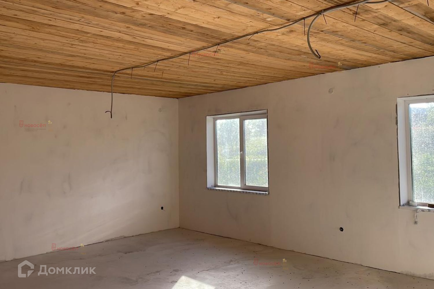 В доме никто не жил, стены оштукатурены, требуется только оклейка обоев и установка натяжных потолков под свой вкус и цвет, на полу установлена система - теплый пол по всему 1 этажу.