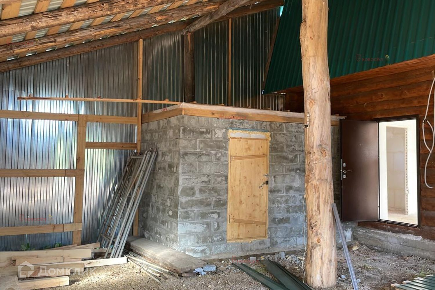 Дом построен в 2022 году, материал стен - бревно, фундамент - ленточный, в доме сделана свободная планировка, большая кухня гостиная около 40 кв.м, спальная комната 16 метров, при желании можно зону гостиной разделить, санузел 5 кв.м, второй этаж- мансарда 50 кв м, можно сделать полноценный жилой этаж.