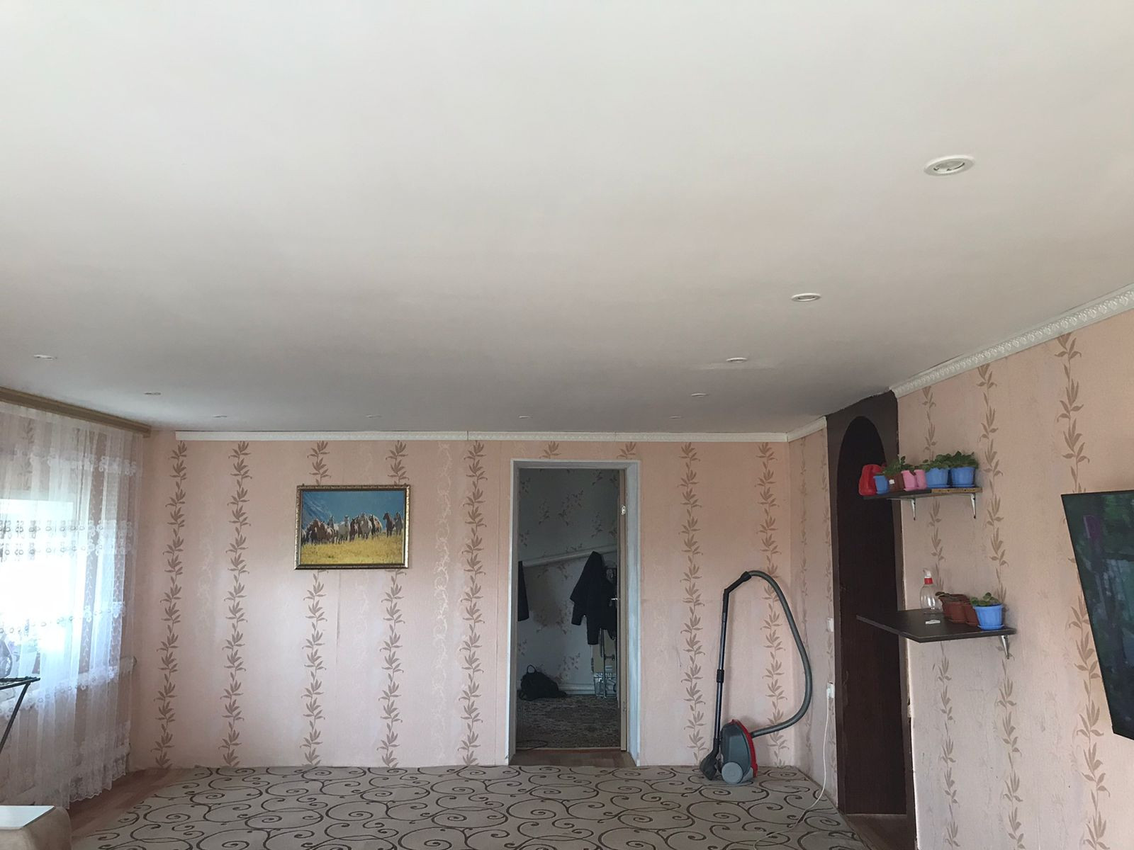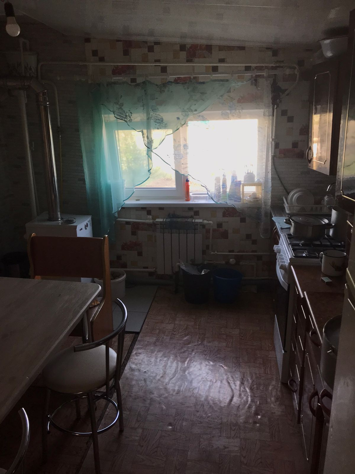 Дом саманный пристрой кирпичный, 3 комнаты 30,5/11,8/12,9 кв.м., кухня -10 кв.м., Частичные удобства: холодная вода и канализация (сливная яма). Туалет на улице, окна пластиковые во всем доме, Пол-линолеум,стены-обои, потолки-гипсокартон, ОАГВ,  крыша шифер. Баня на дровах в рабочем состоянии, гараж 4х6 кв.м., из блоков, Сарай из блоков, земельный  участок 10 соток не оформлен.