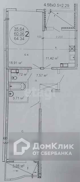 Общая площадь 58.7 м2