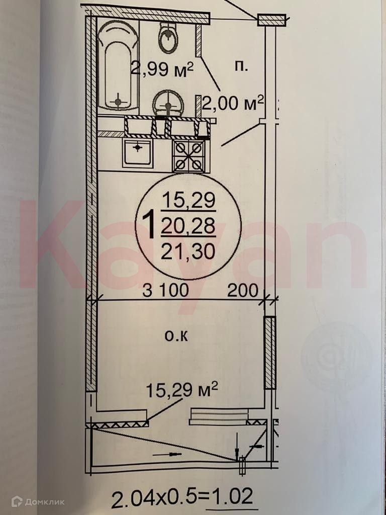Общая площадь 20.6 м2