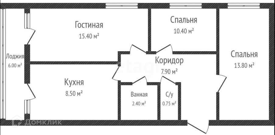 Общая площадь 59.3 м2