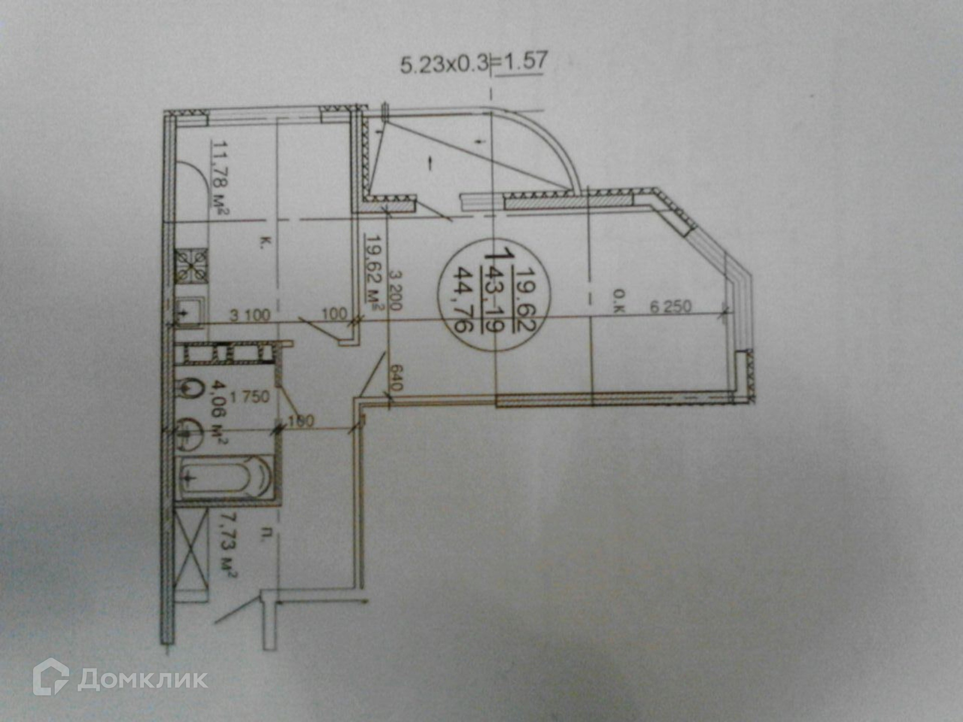 Общая площадь 44.8 м2