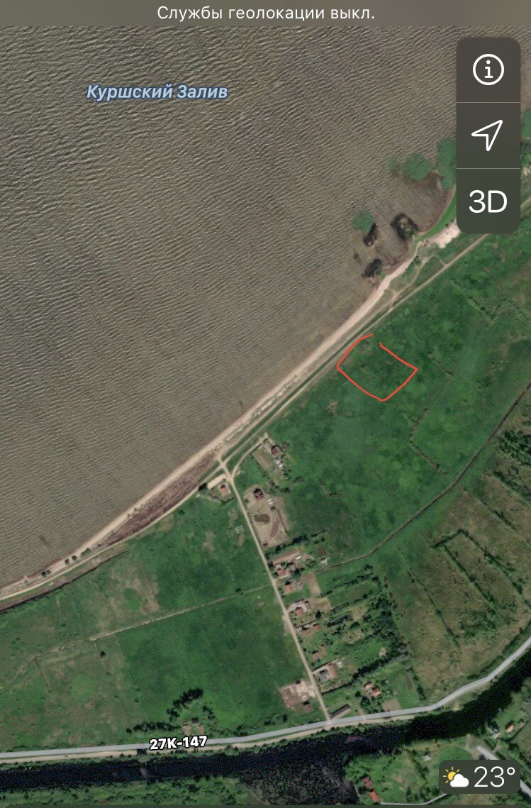 Продаётся участок 8 соток на первой береговой линии Куршского залива под ИЖС в посёлке Красное Полесского района.