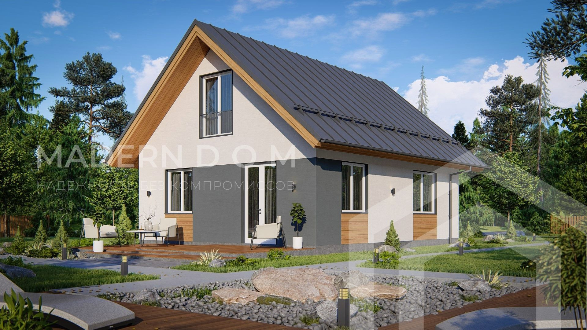 Одноэтажным дом в классическом европейском стиле