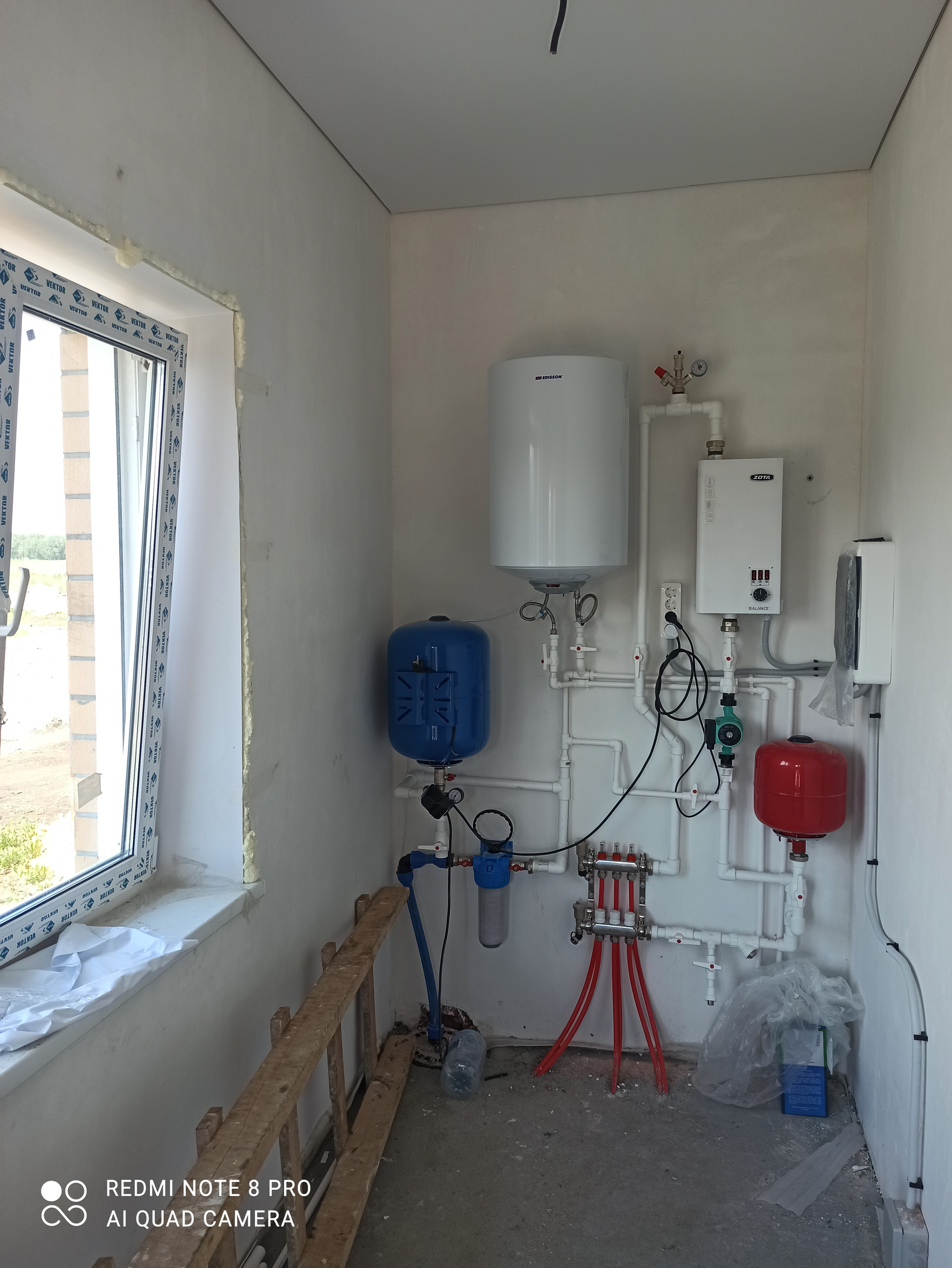 · тёплый водяной пол, залит полусухой финишной стяжкой под 0;