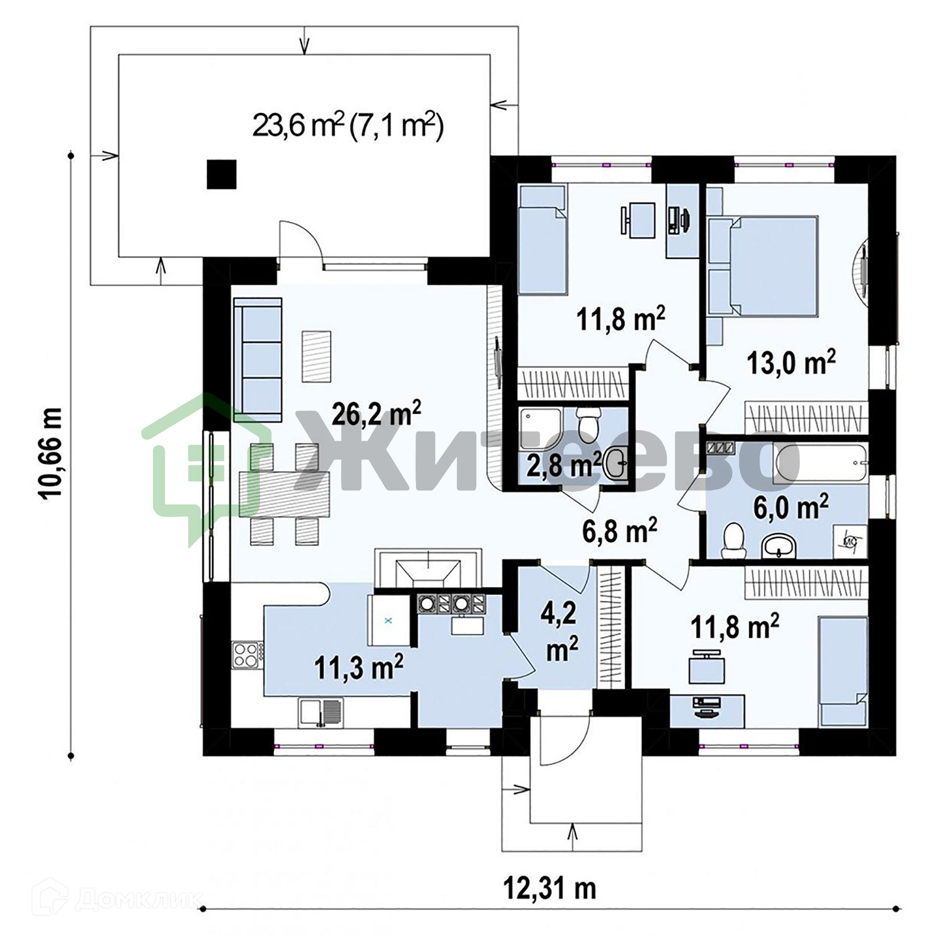 Общая площадь дома: 94м2