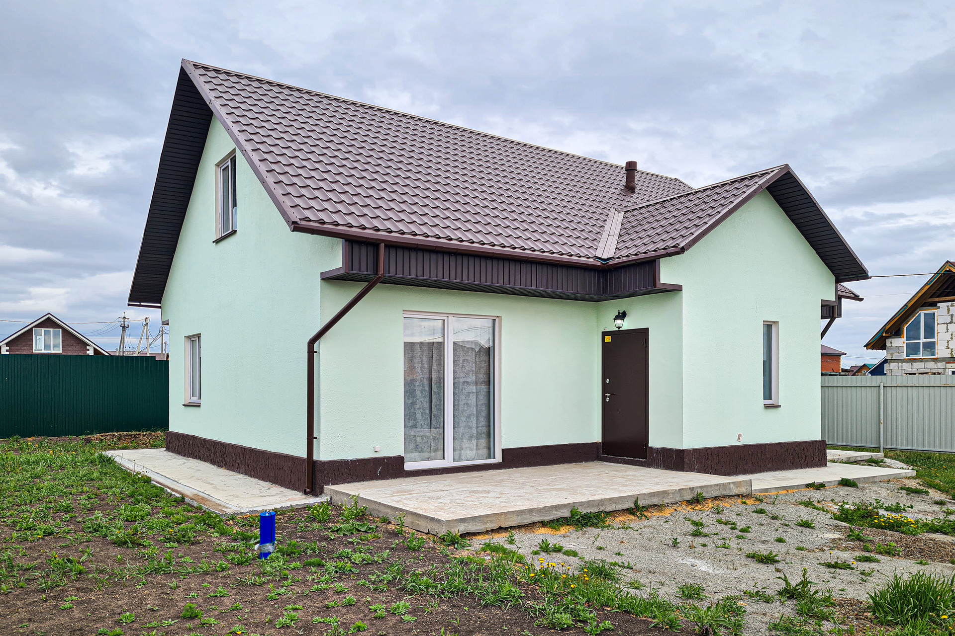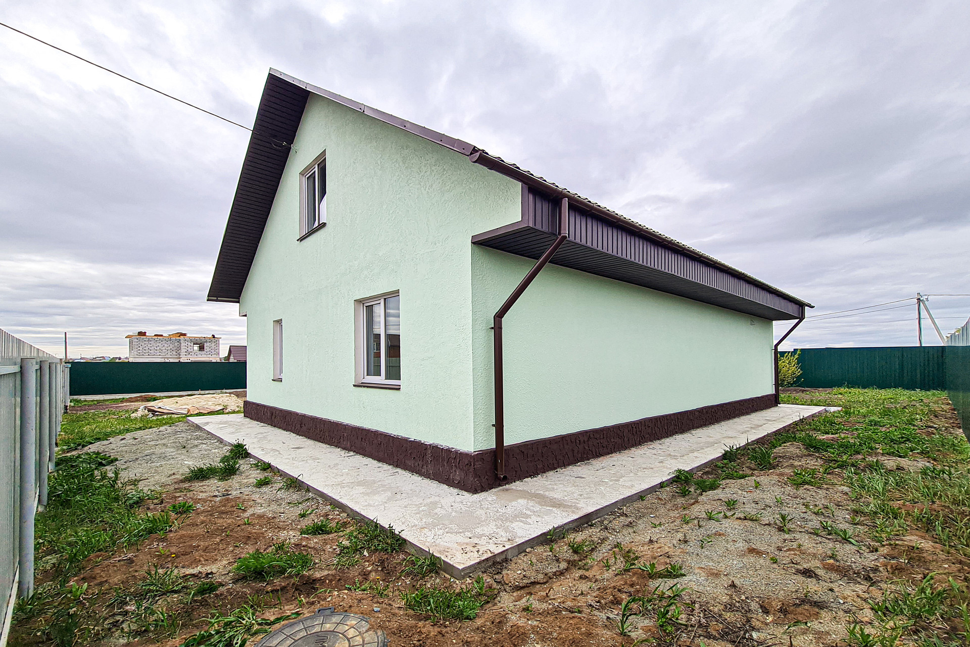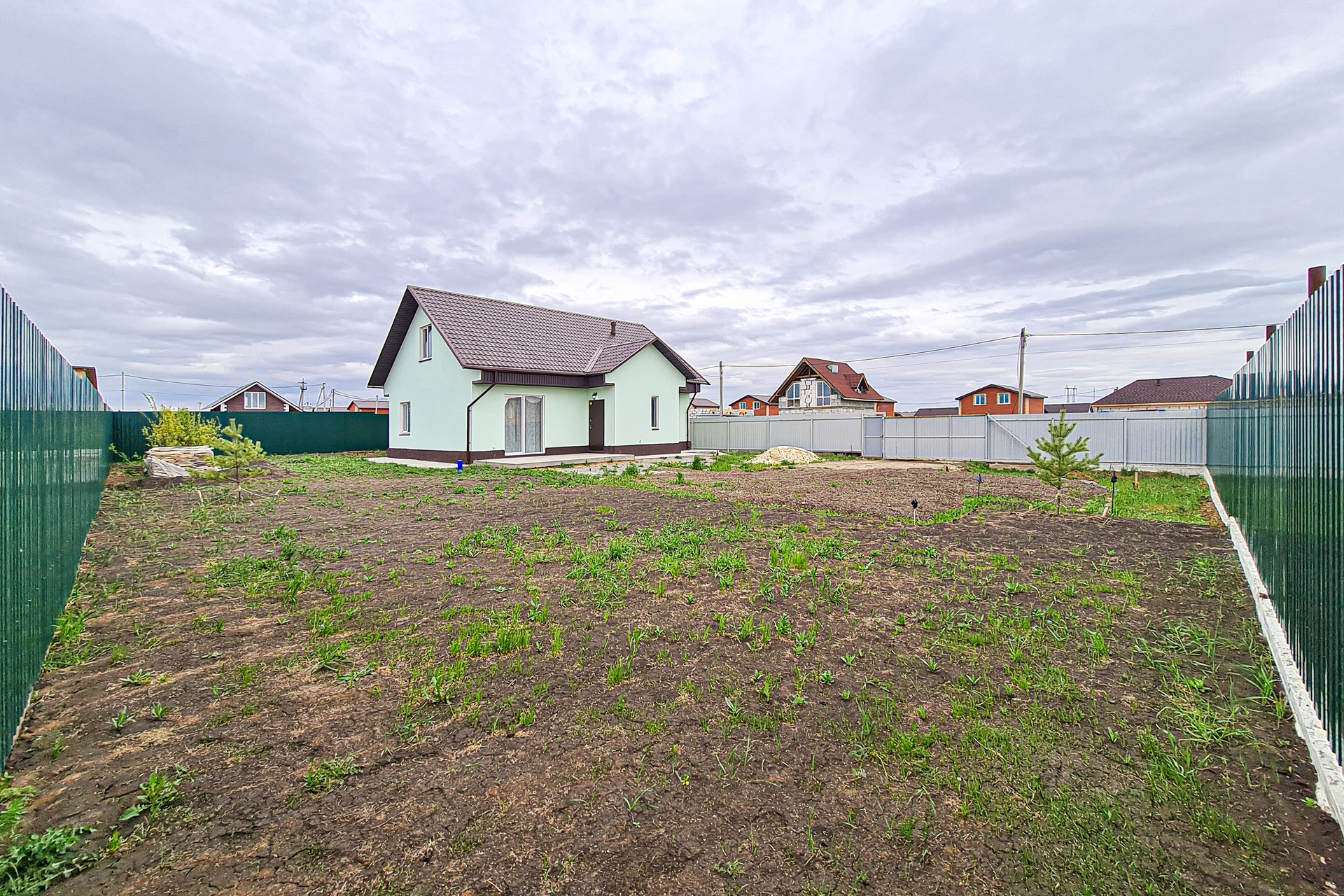 Участок огорожен с откатными воротами. Подготовлен ландшафт.