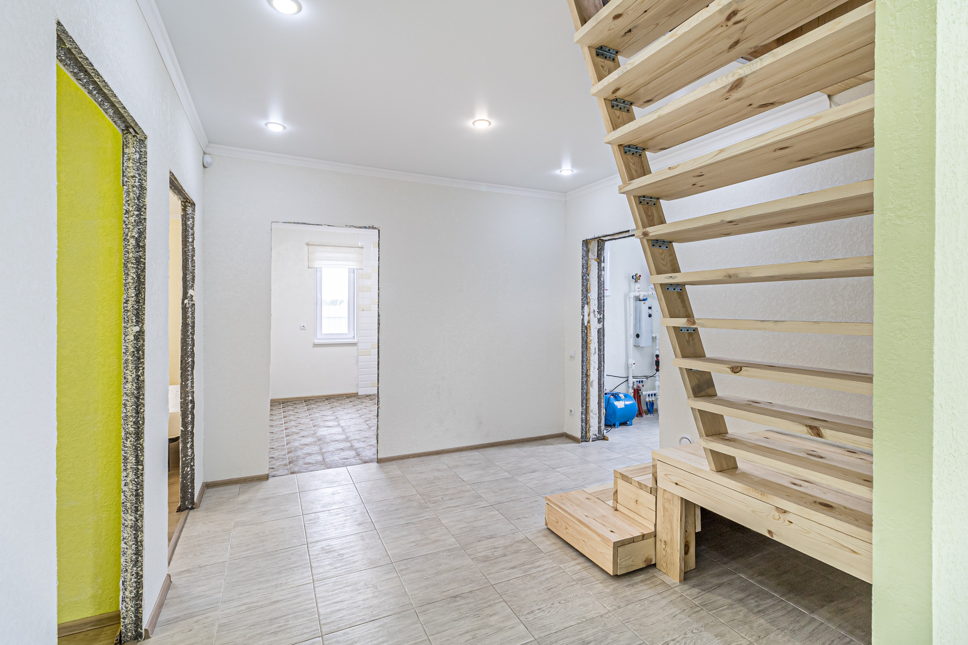 Первый этаж - 89 кв. м. с отделкой, просторные кухня и гостинная, спальня, гардеробная, санузел, коридор, тамбур с компактным расположением коммуникаций.
