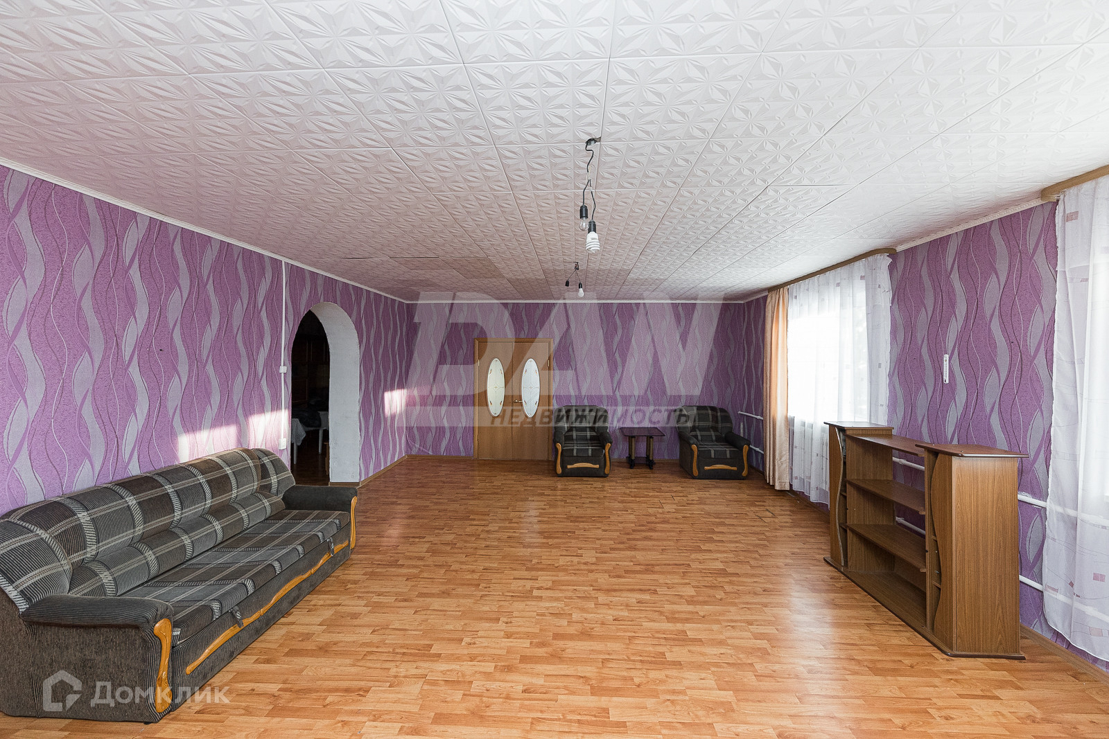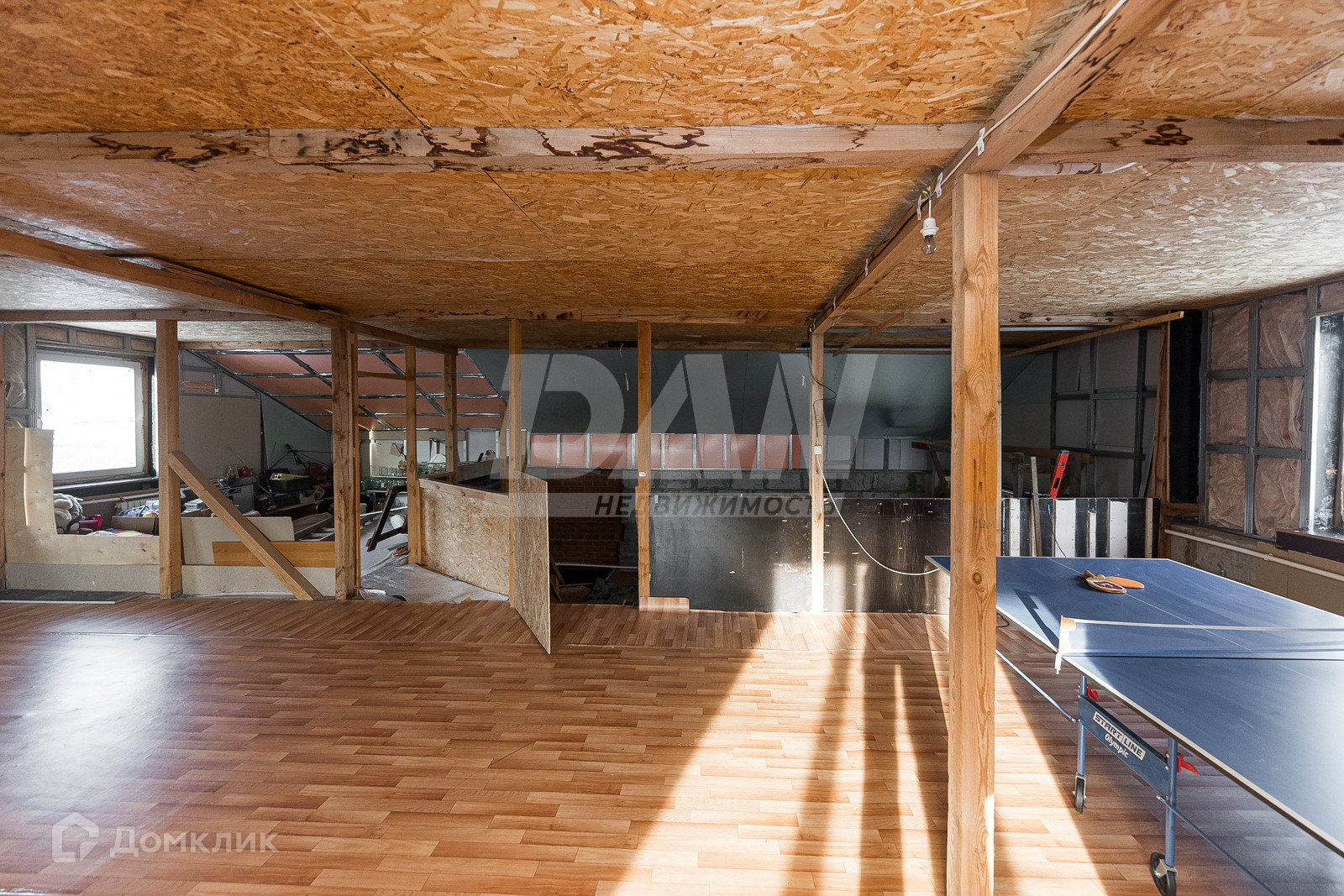 На первом этаже расположена просторная гостиная-зал 42,1 кв.м., спальня 18 кв.м., кухня 15,2 кв.м. ,совмещенный санузел 5,2 кв.м., прихожая 16 кв.м. На этаже сделан косметический ремонт, поклеены обои, пол-ЦСП лист, покрытие ламинат, установлены пластиковые окна и межкомнатные двери. Комнаты смежные, окна выходят на разные стороны света. Так же на первом этаже расположен гараж со смотровой ямой с выходом из дома.