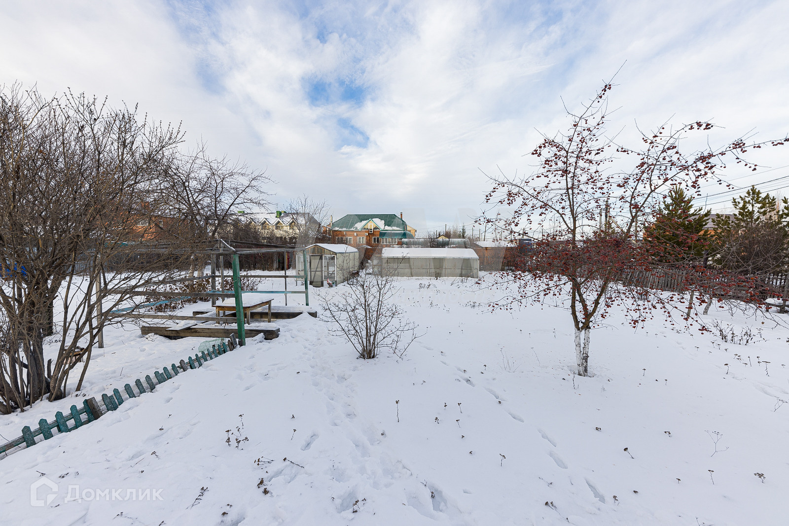 Участок огорожен и ухожен, с множеством плодовых и хвойных деревьев, кустарников.