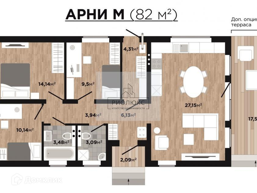 Общая площадь 82 м2