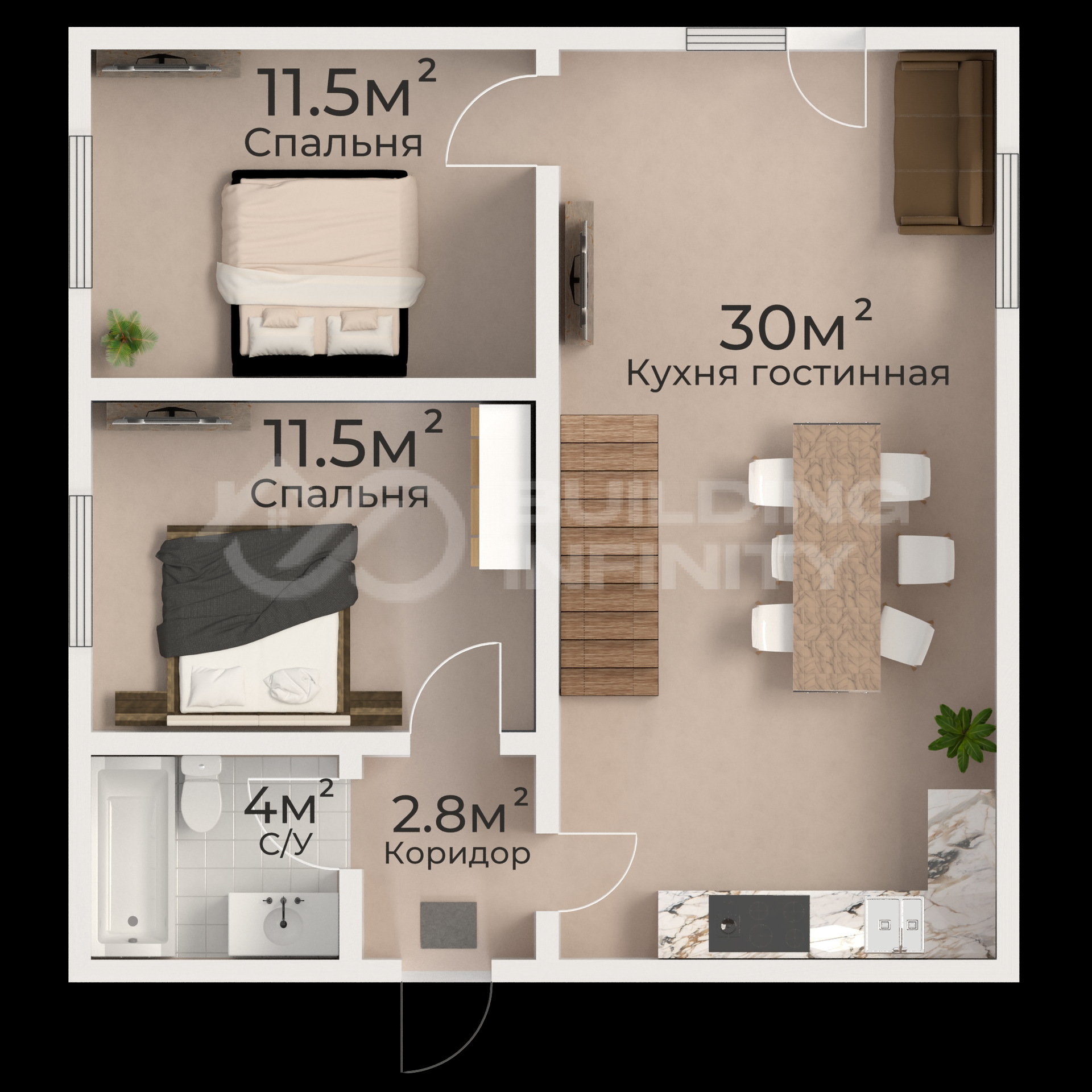 Общая площадь 60 м2