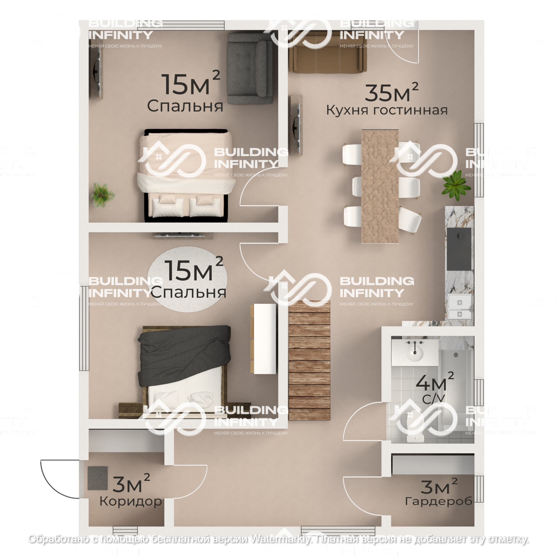 Жилая площадь 65 м2