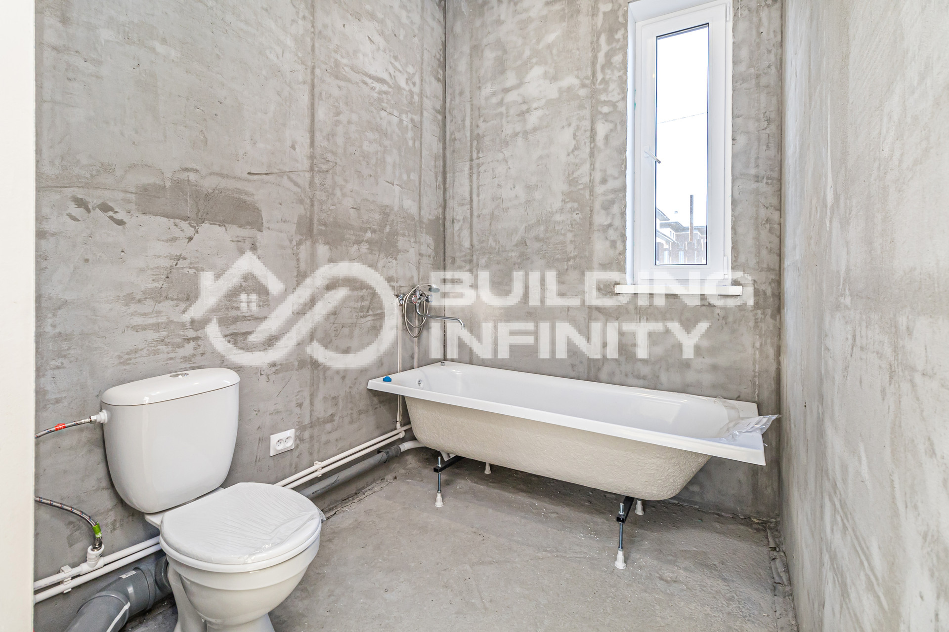 установлена ванна, унитаз, смеситель