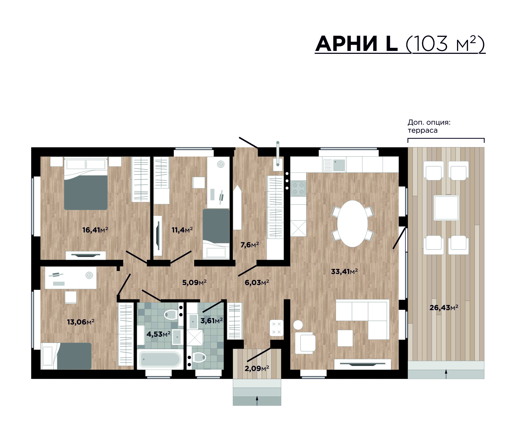 АРНИ L – по-настоящему семейный дом, общая площадь, которого составляет 103 кв. м. и включает: