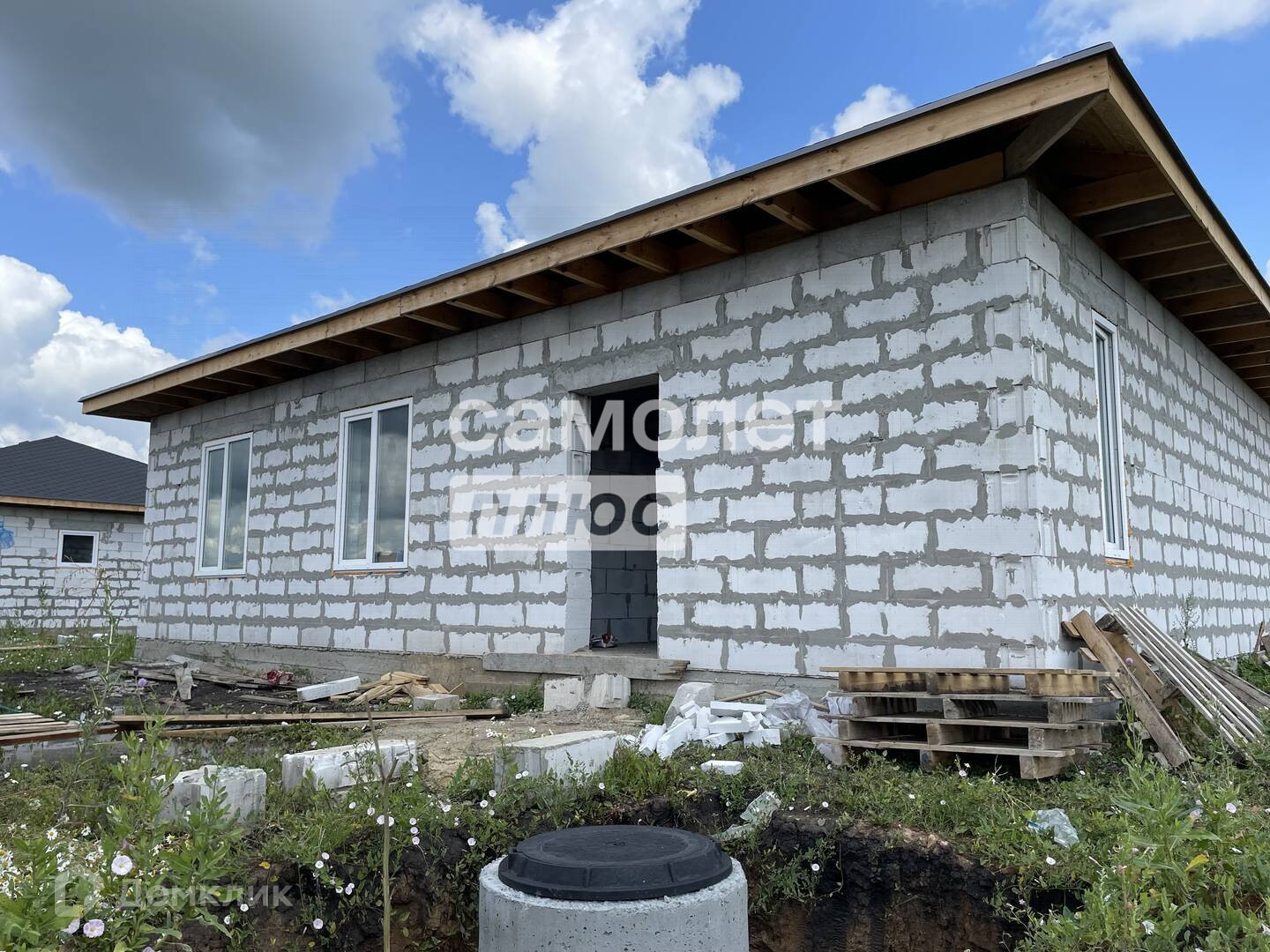 Фундамент ленточный, скважина (вода заведена в дом).