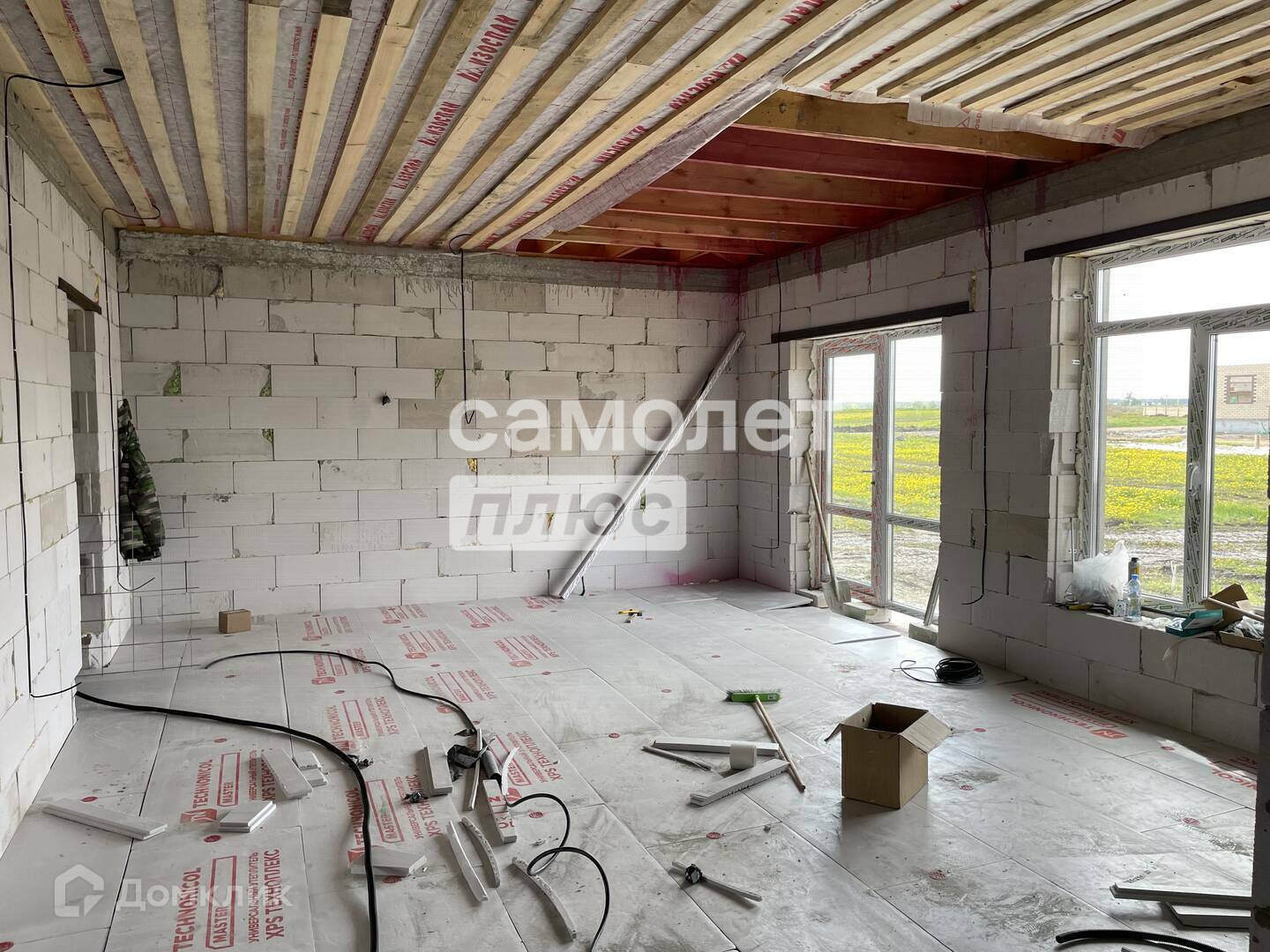 Теплые водяные полы, полусухая стяжка пола, разводка электрики  по потолку, натяжные потолки, двери с термо -разрывом.Купить дома возможно на любом этапе строительства.