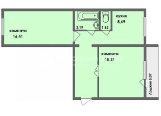 2-ком. квартира на продажу, 45.2 м2, Цветочная улица, 4