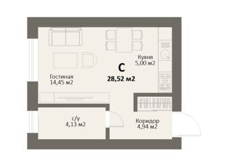 Общая площадь: 28.52 м2