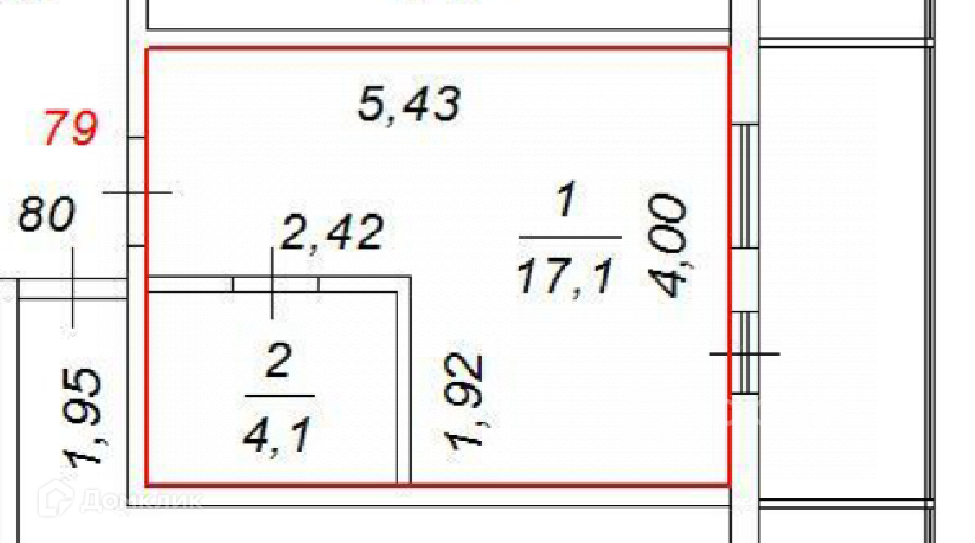Жилая площадь 17.1 м2