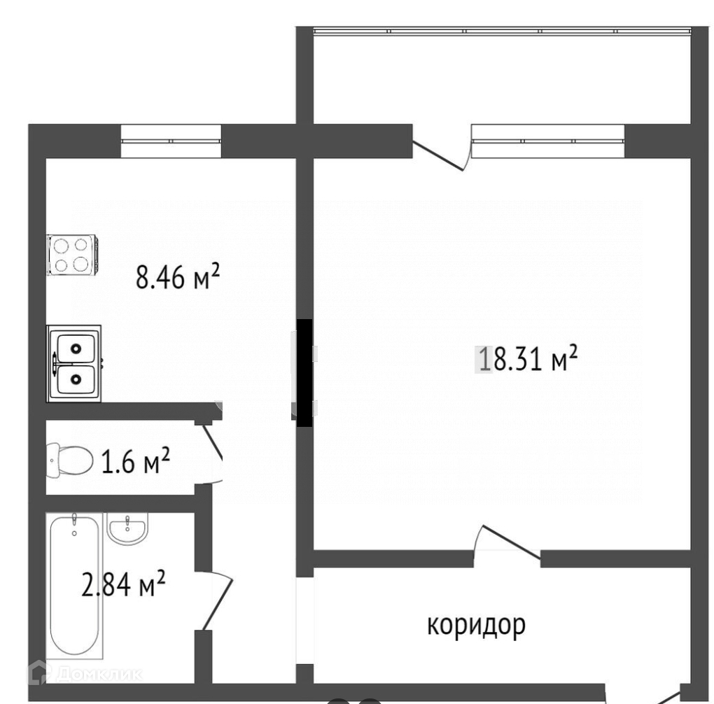 Балкон, лоджия 1 балкон