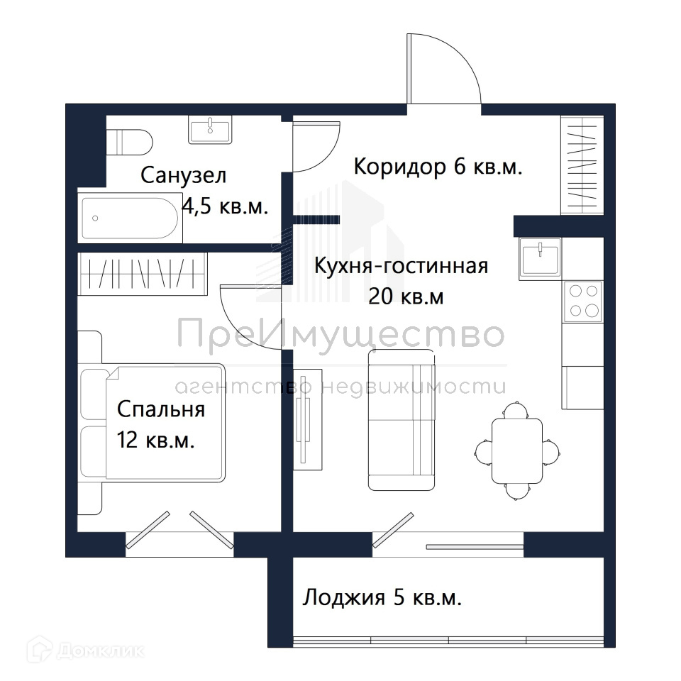 Отличная и современная планировка (с нишей под гардероб), кухня-гостиная 20 кв.м., спальня 12 кв.м., большая лоджия 5 кв.м.