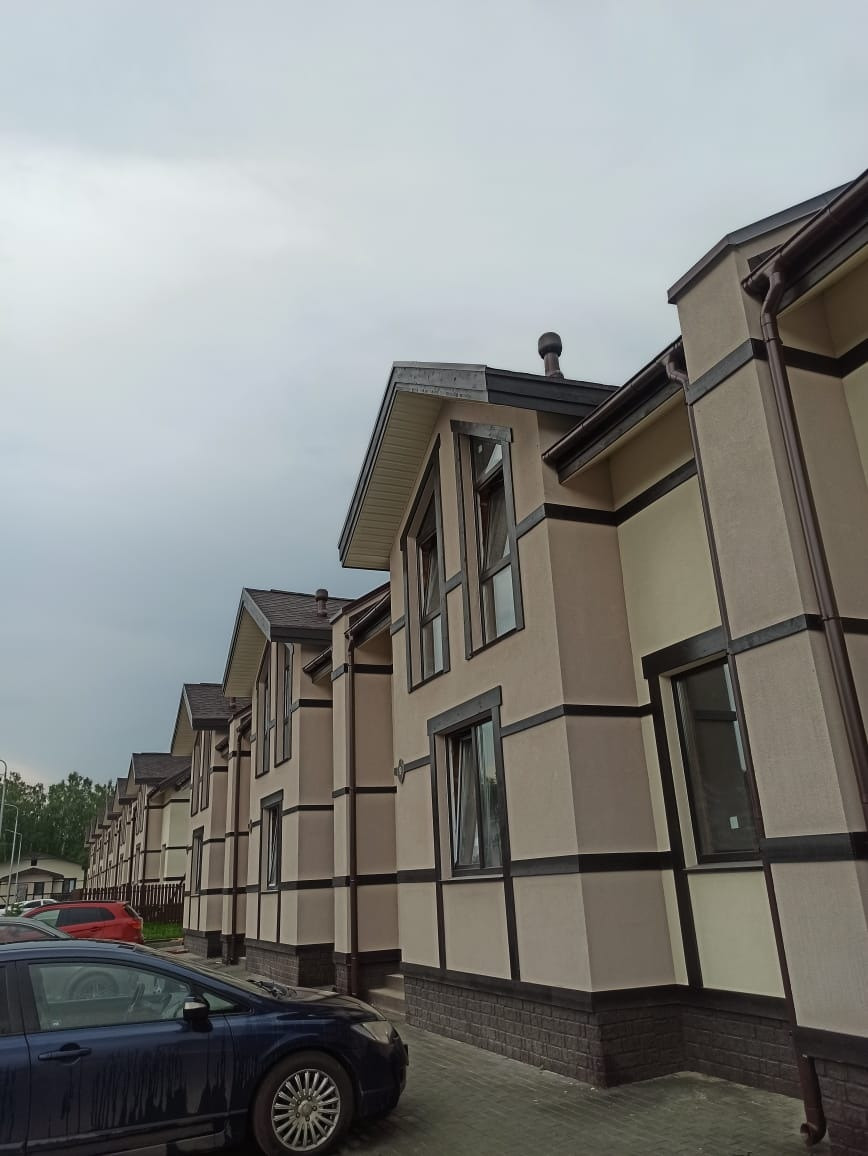 Внешний облик всего дома выдержан в общей для поселка архитектурной стилистике – австрийско-немецкий фахверк. Благоустройство: дороги, тротуары, спортивные и детские площадки, прогулочные зоны по «евро-стандарту» во всем поселке. В доме семь домовладений, предлагаемый к продаже таунхаус расположен в центре дома.