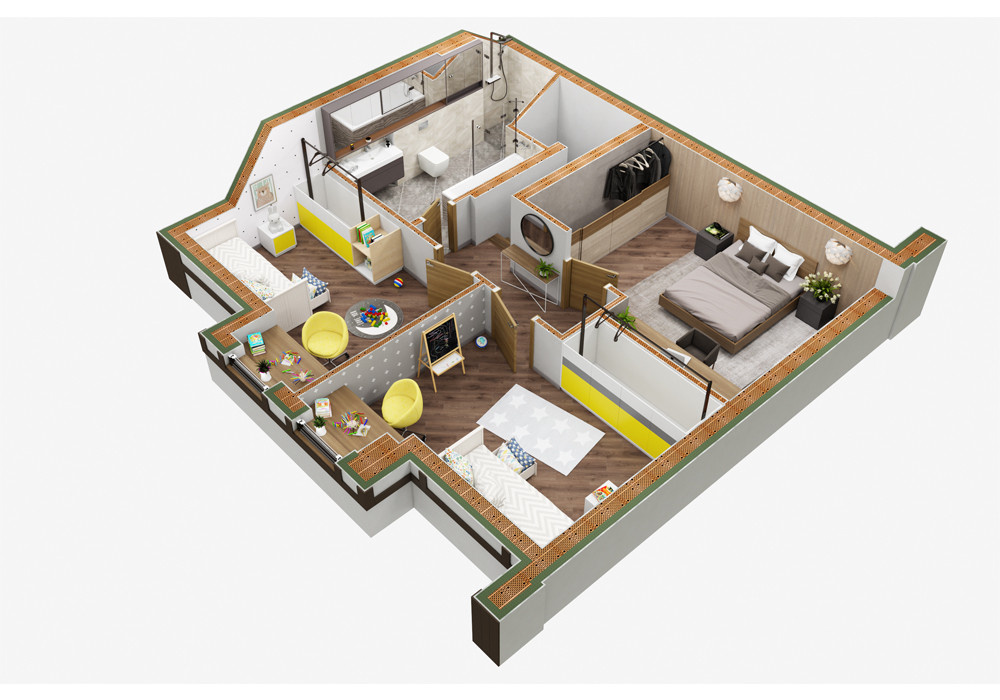 2 этаж (мансардный), утепленная крыша: три спальни 15,8/14,7/12,8 кв. м. Санузел 9,2 кв. м. Холл 4,1 кв. м.